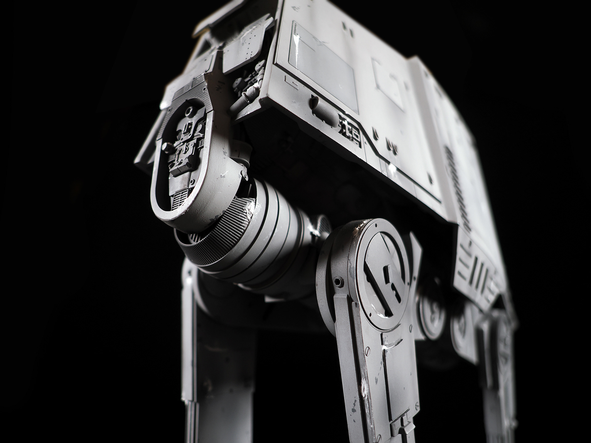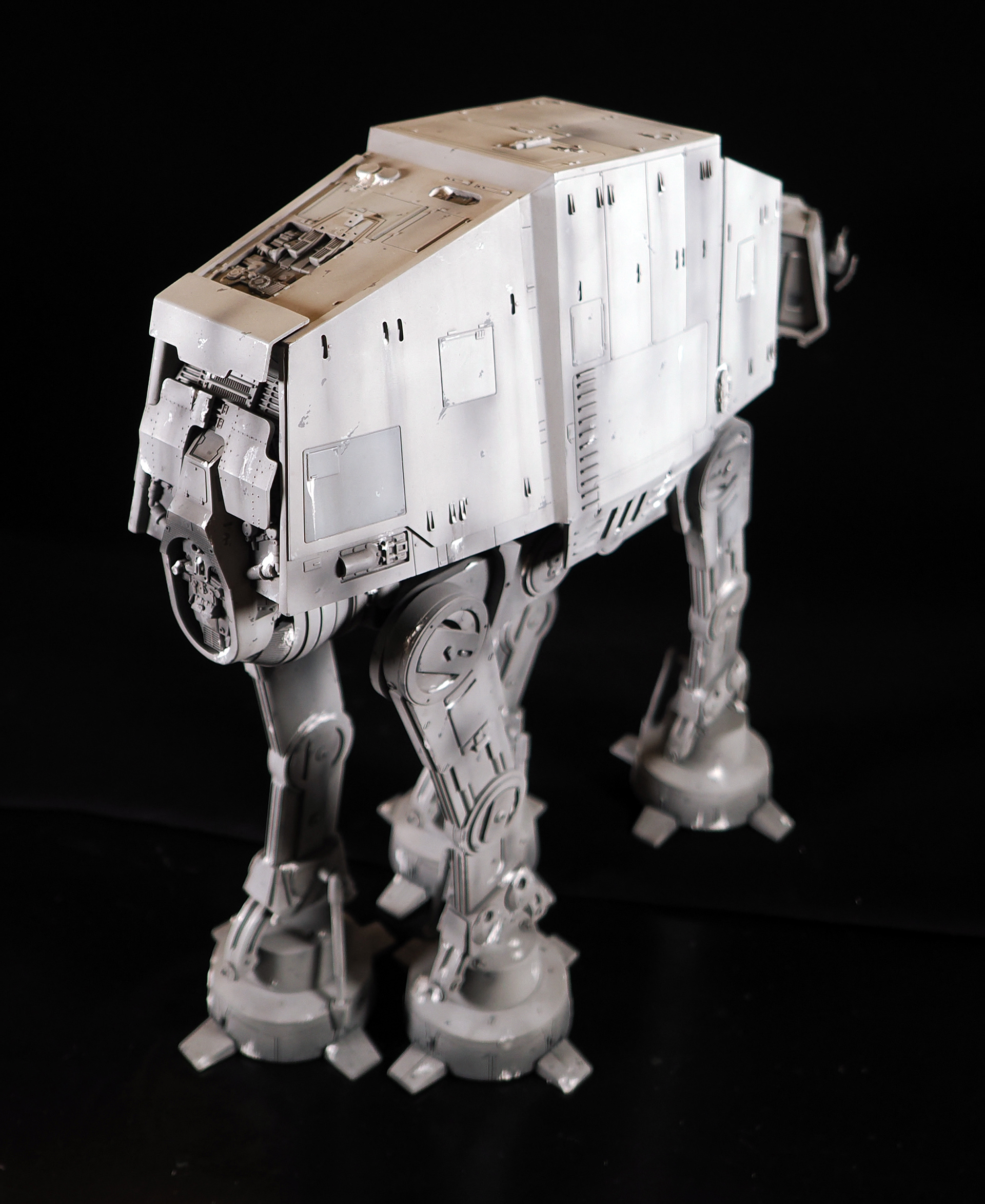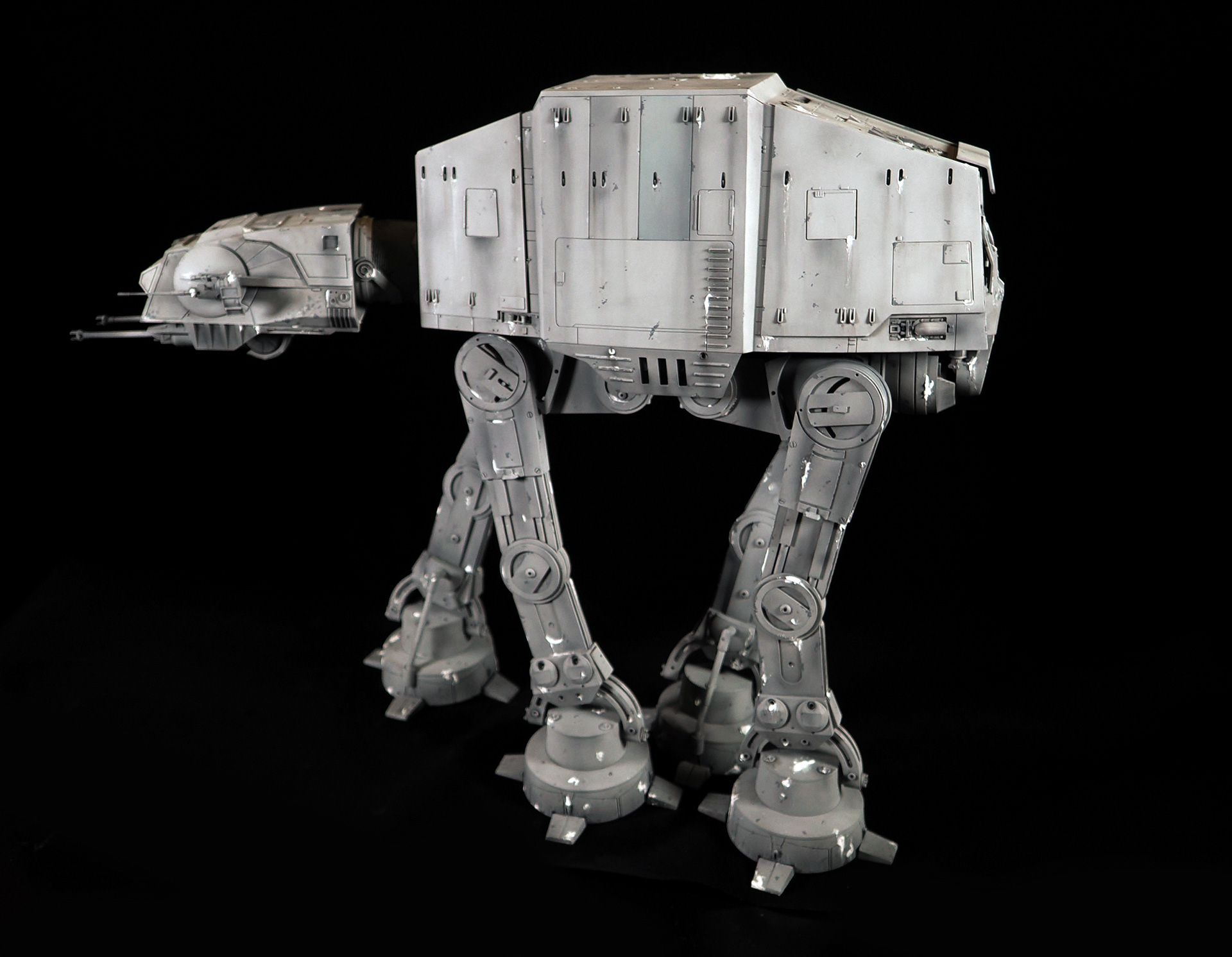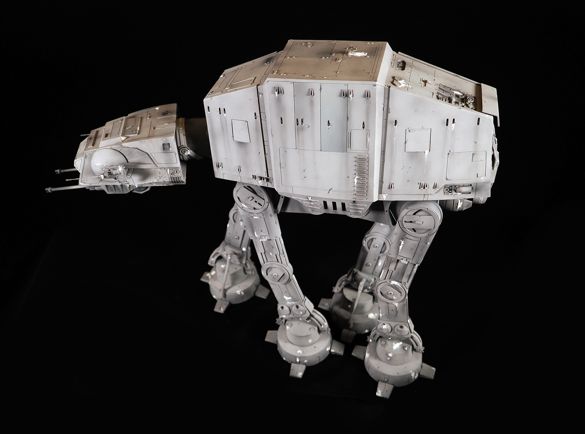 This is a studio scale replica of the AT-AT Walker from The Empire Strikes back. This model is a mix of completely functional machined metal from the "waist down" and resin body/head/neck. So this can be posed and even used for stop motion animation. It was a challenge to paint, but the end results were well worth the effort!