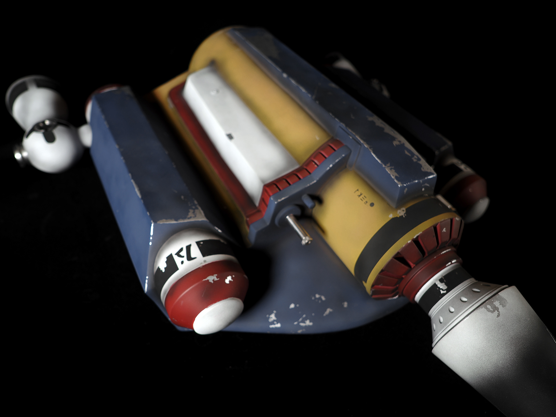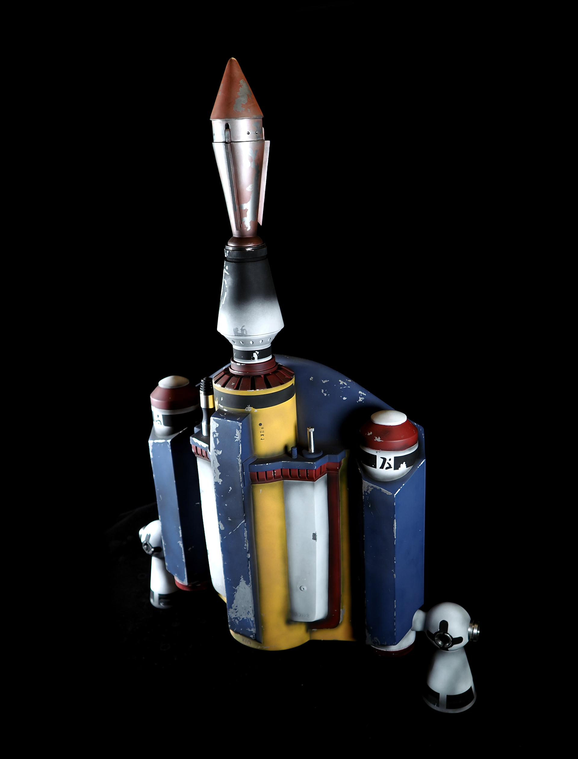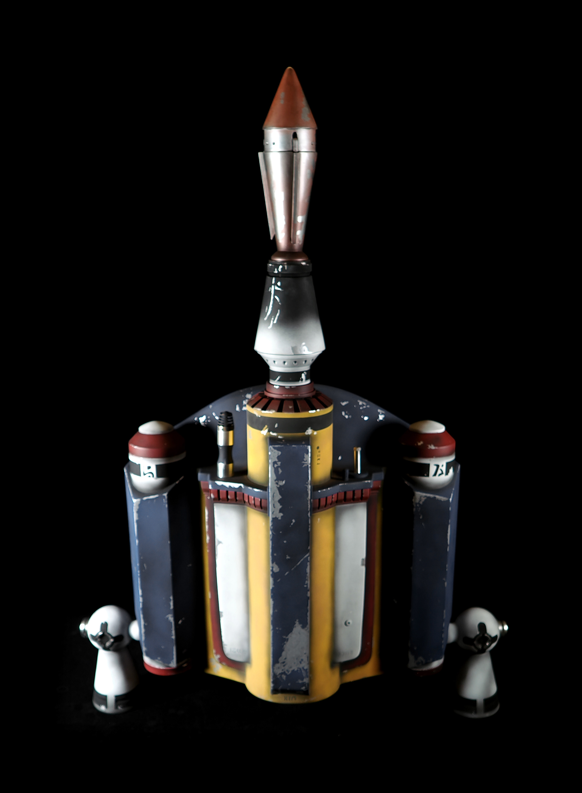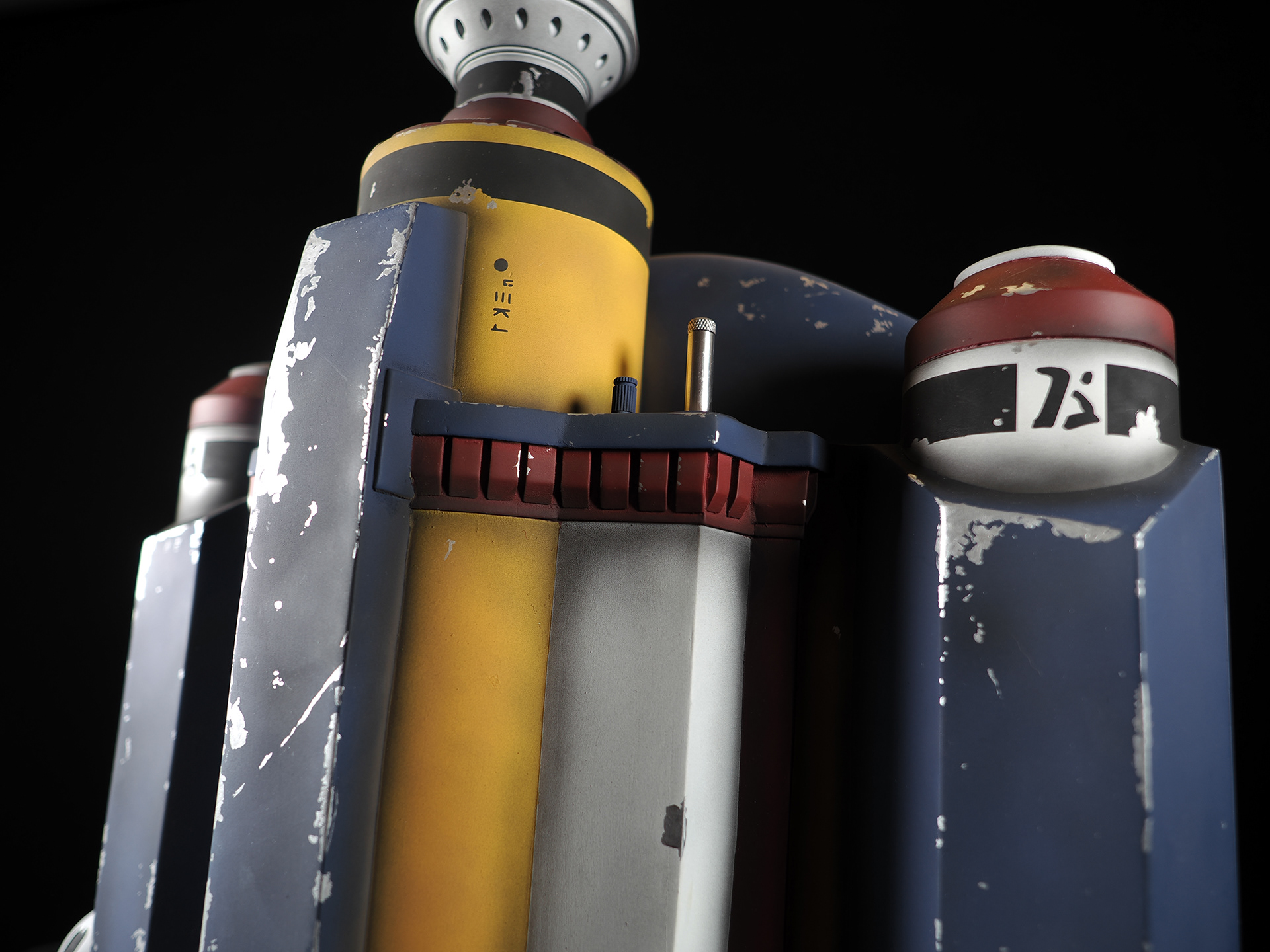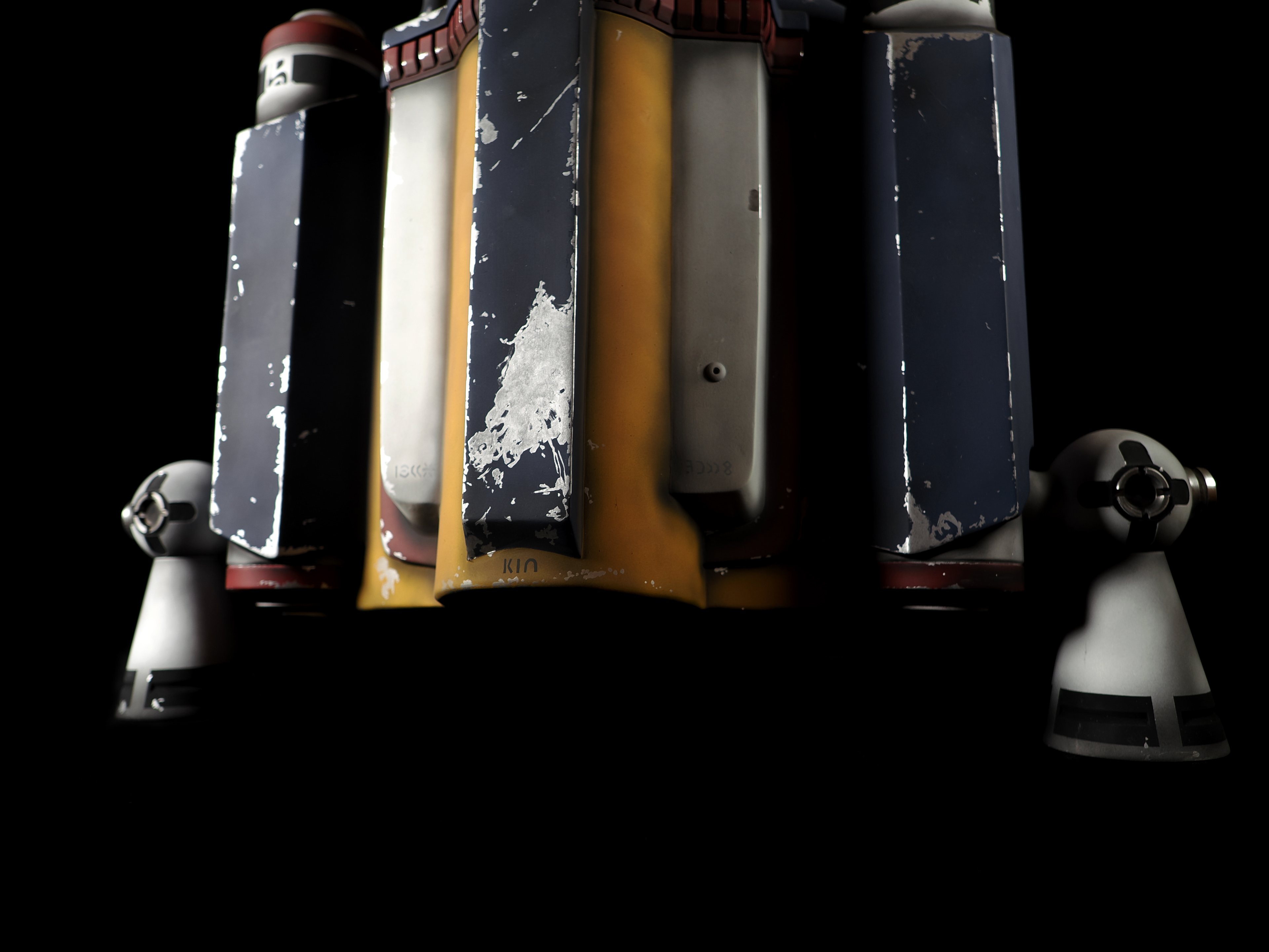 This is a Boba Fett Rocketpack in it's Return of the Jedi livery. I was sent this 1:1 prop replica fully painted but not weathered, and the decision was made to strip it back, reprime, repaint, and weather so it would be as good as it could possibly be. The various connectors and ports were also added, and all the metal accessories are indeed metal. This is one of my favorite characters from childhood and really made me smile when it was complete.