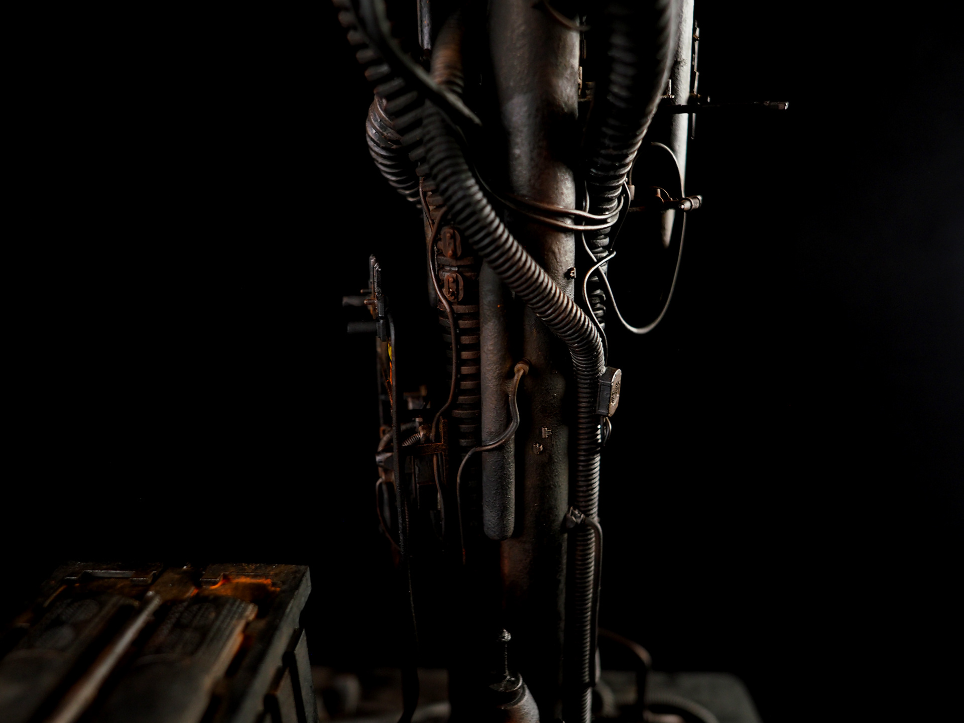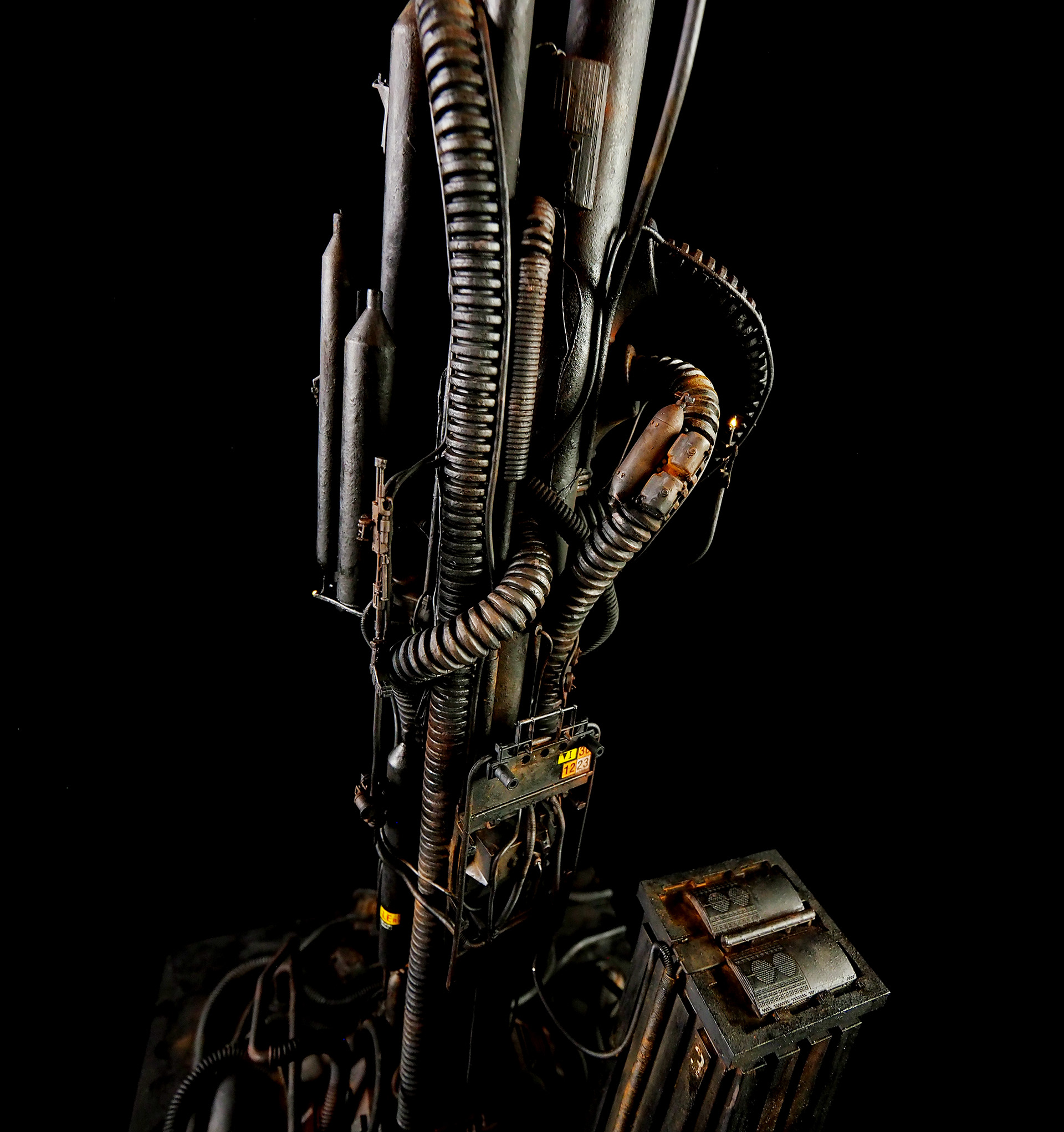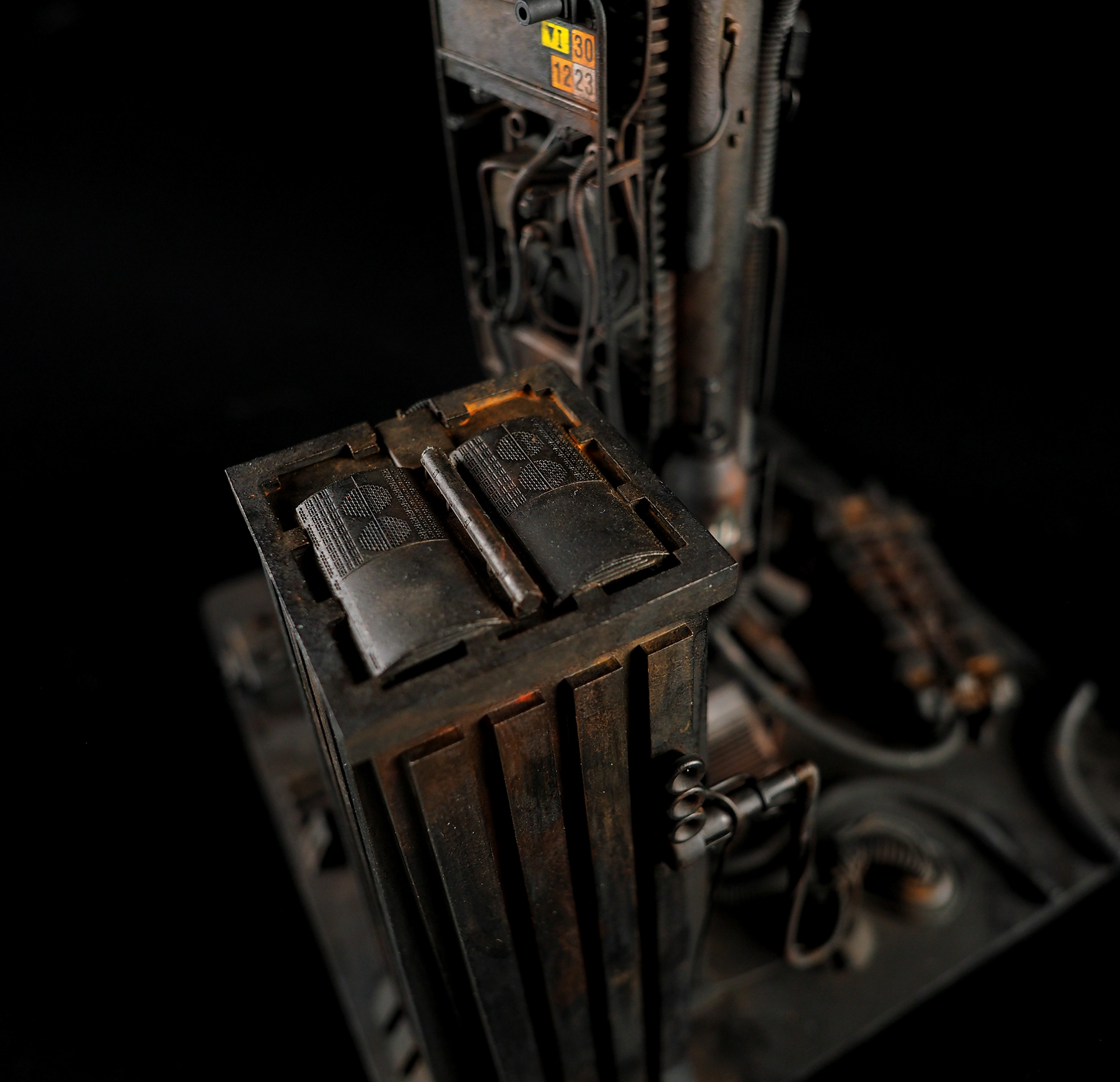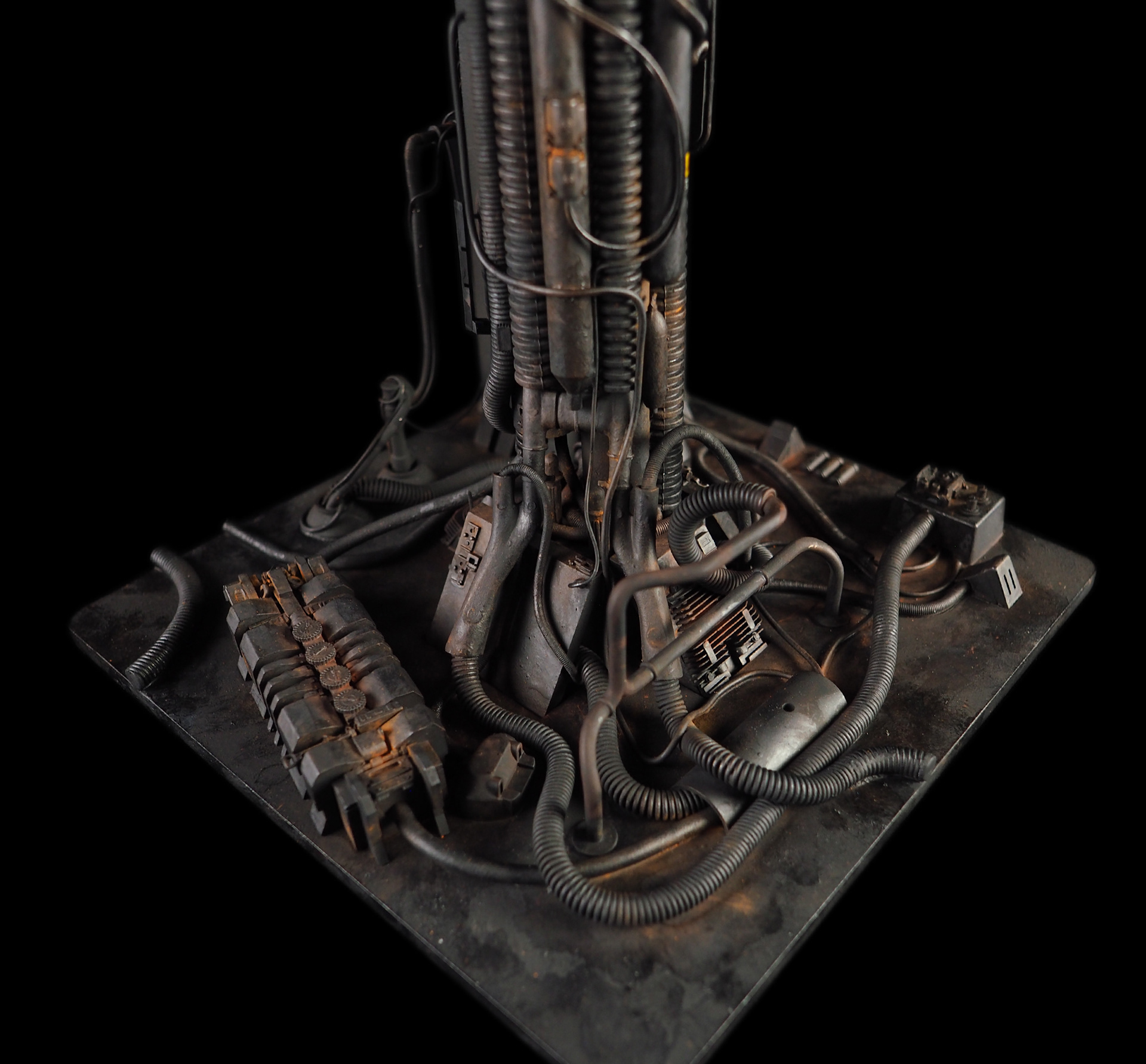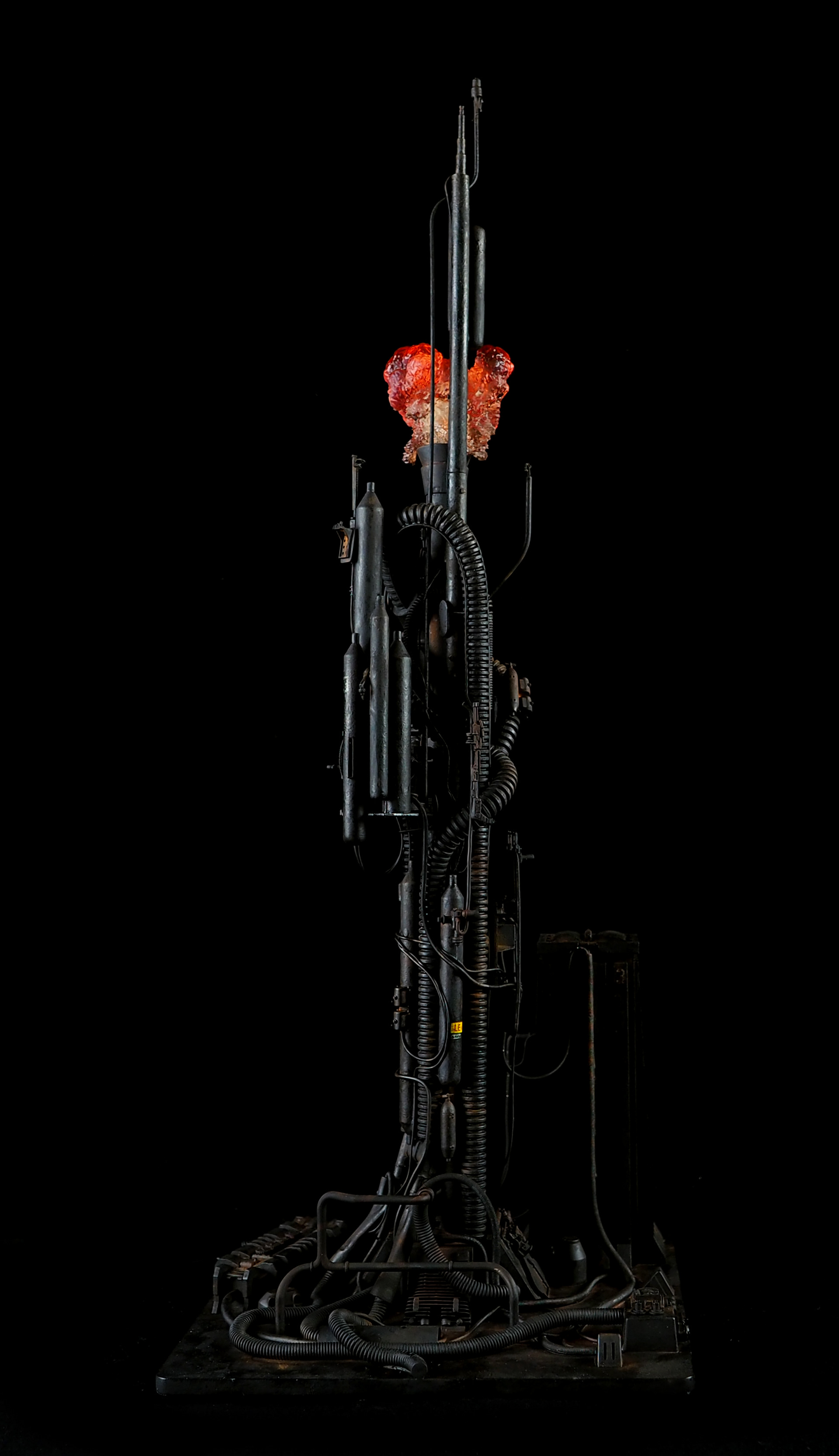 This is my interpretation of one of the foreground refinery towers from the Hades Landscape from the opening shot of Blade Runner. To achieve the belching fire effect, I printed a fireball in clear resin and embedded a series of flickering LEDs inside. All other lights are super micro surface mount LEDs being fed by magnet wire.