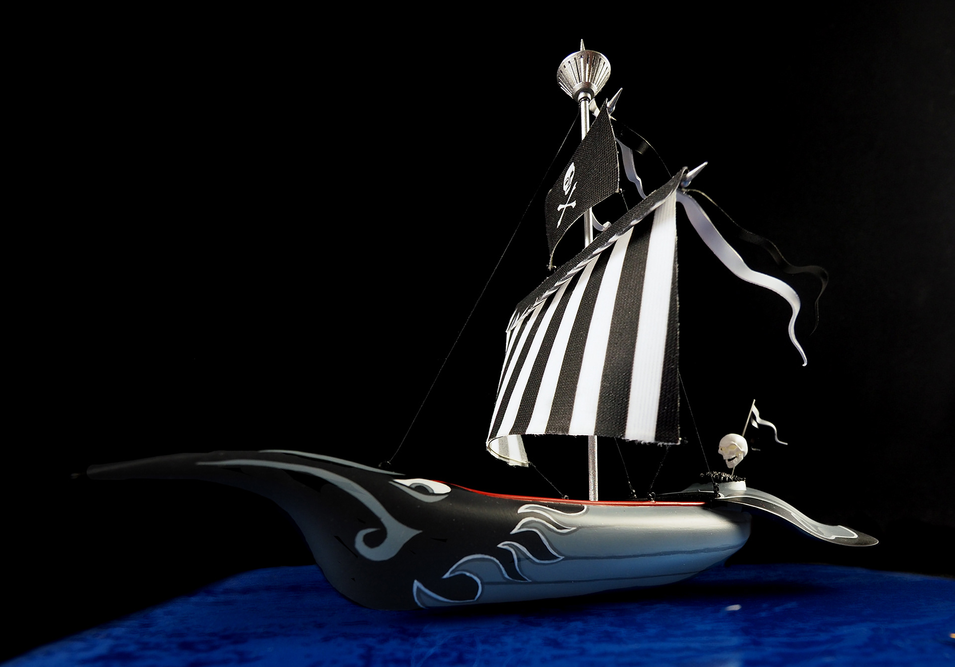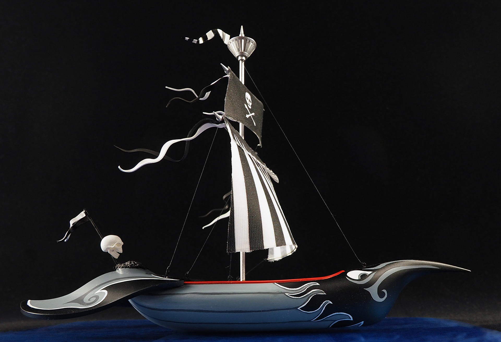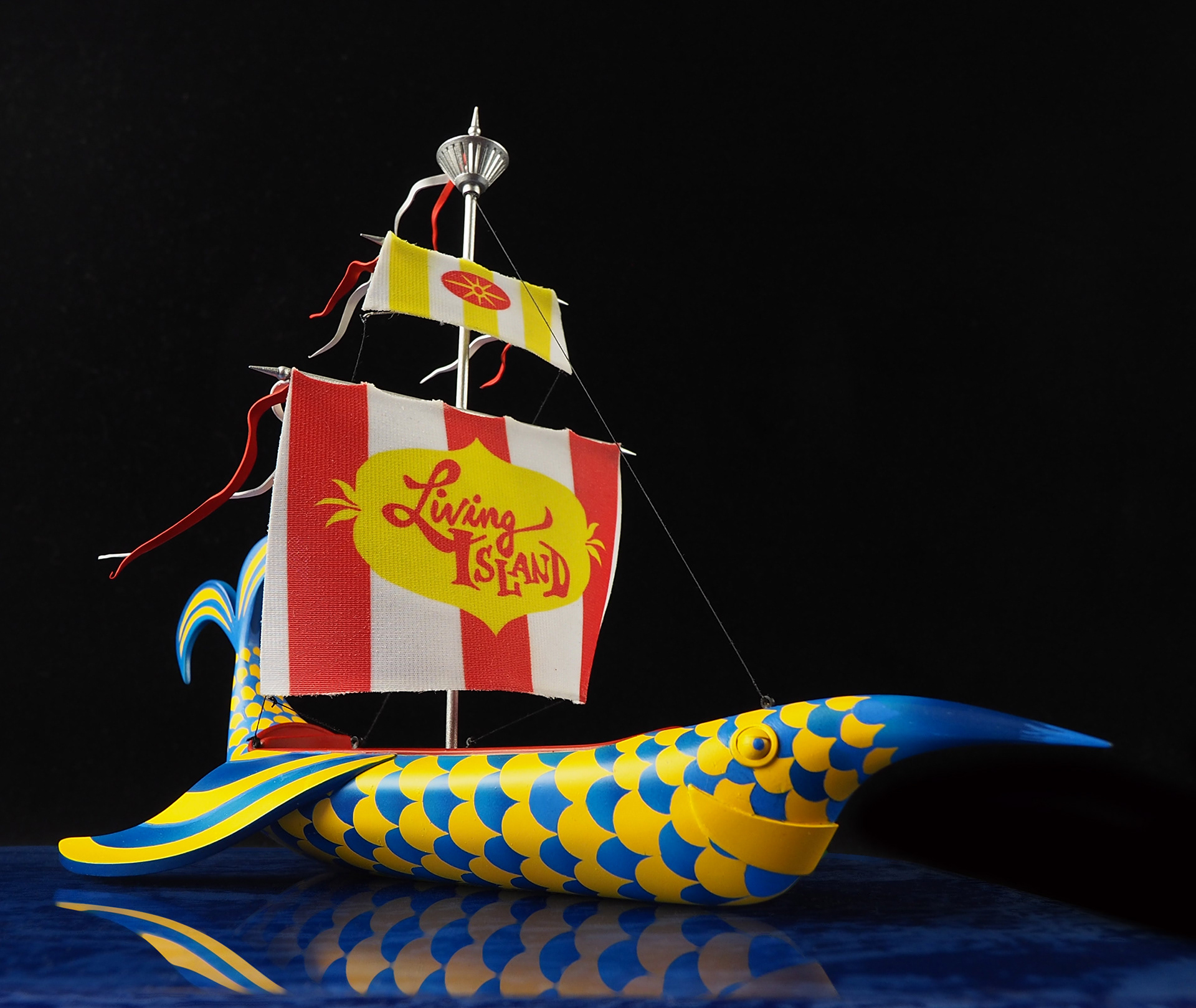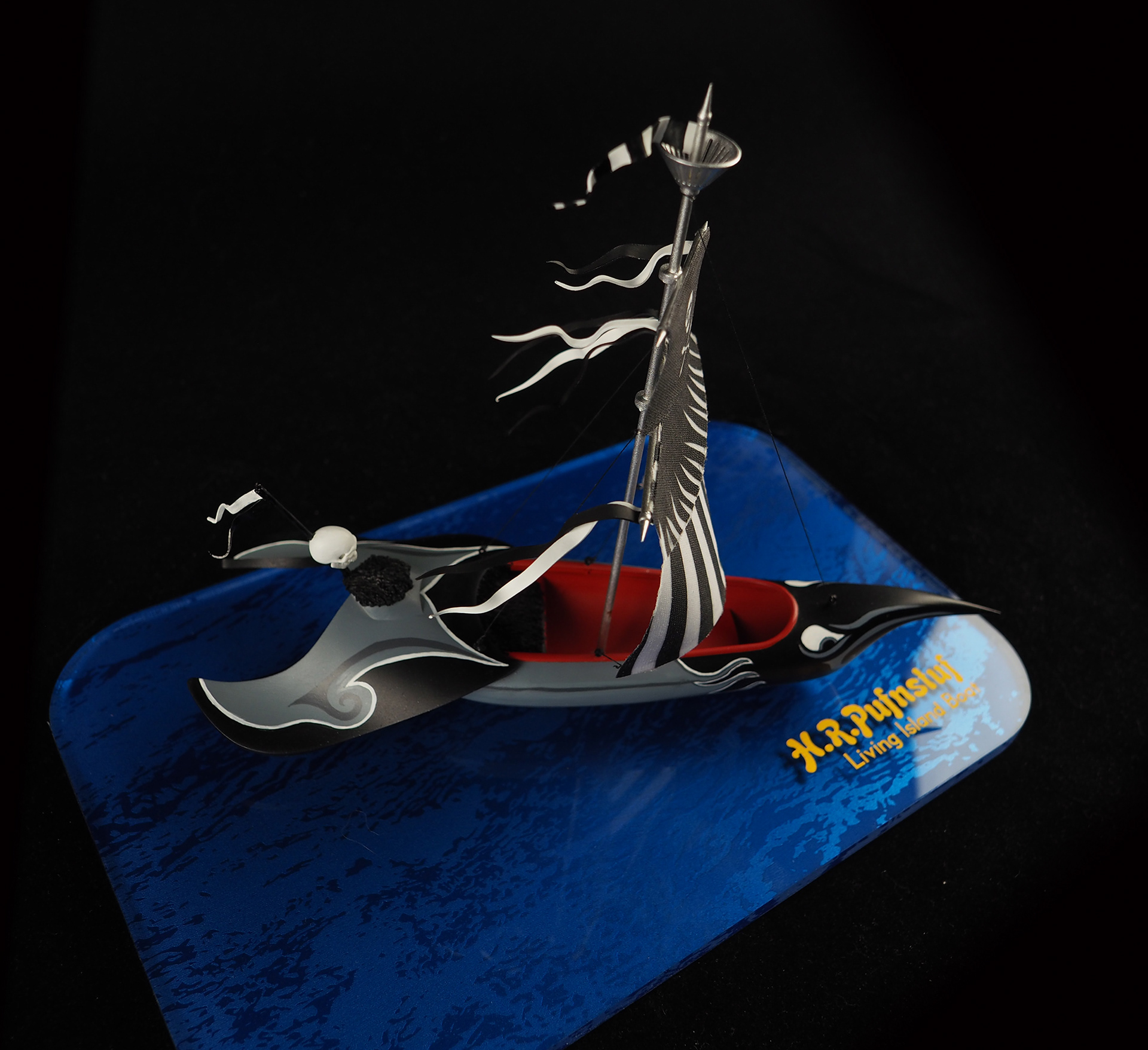 These are little replicas of the boat featured in the intro to H.R. Pufnstuf. As a kid I was so into this show, and I wanted to make something fun and colorful as a surprise model for Wonderfest, an annual model convention I attend in Kentucky. In the show, Jimmy is lured to the colorful boat and sets out to sea, and Witchy Poo springs her trap, waving her wand and making the boat transform into the “scary” version. So on the first day of the show, I would display the colorful Living Island boat, and then randomly swap it out for the “scary” one, hoping that visitors might see the “transformation” occur. These were SUPER fun to make, from the base that looks water-like to the top of the masts.