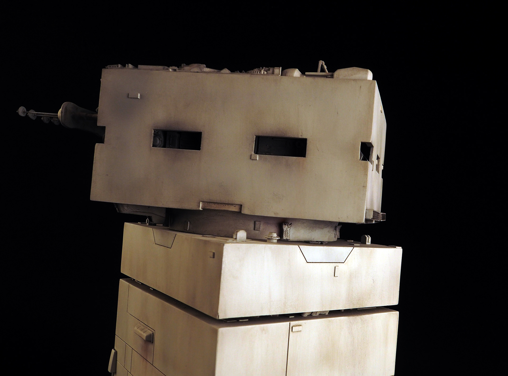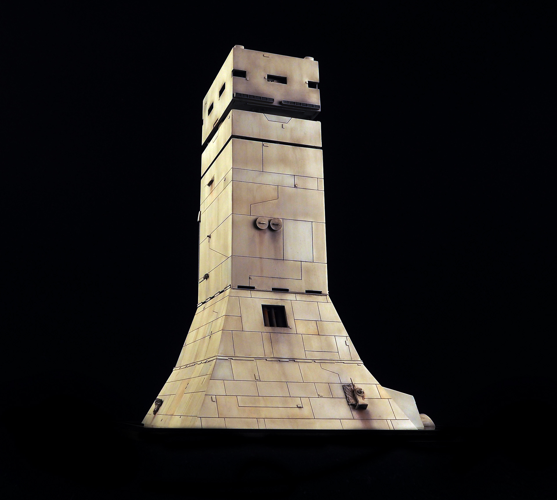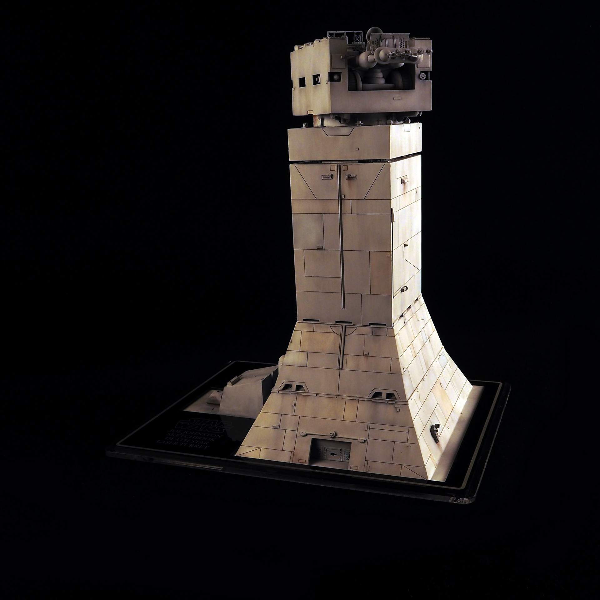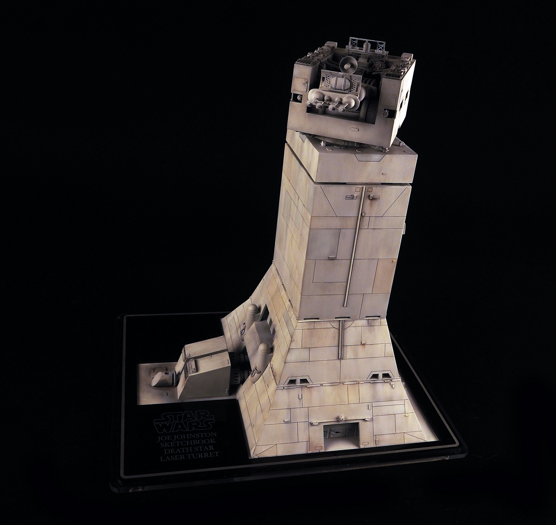A Death Star turret built from a single Joe Johnston illustration. I used a mixture of laser engraved and cut acrylic, 3D printed elements, and traditional methods and materials.