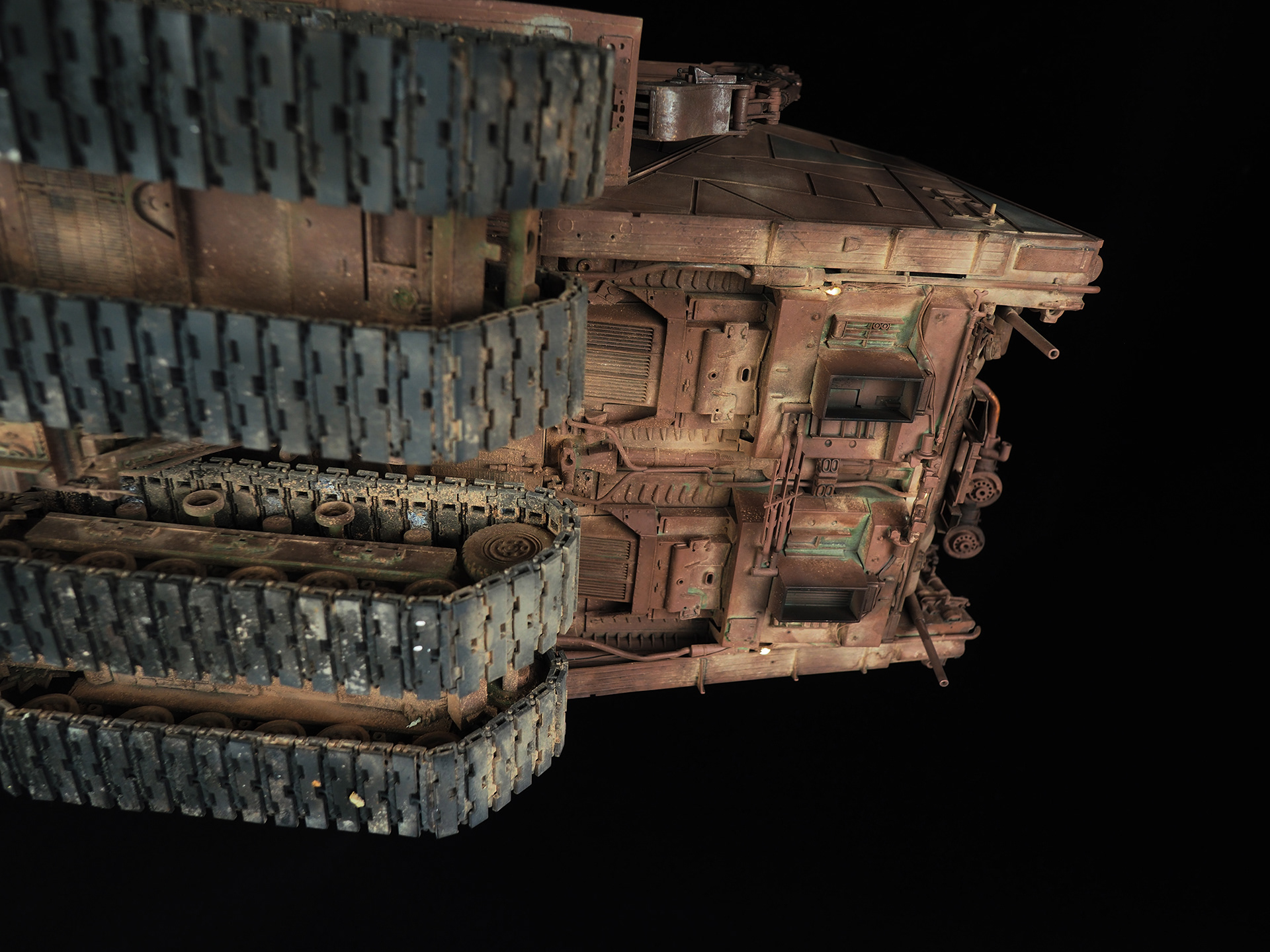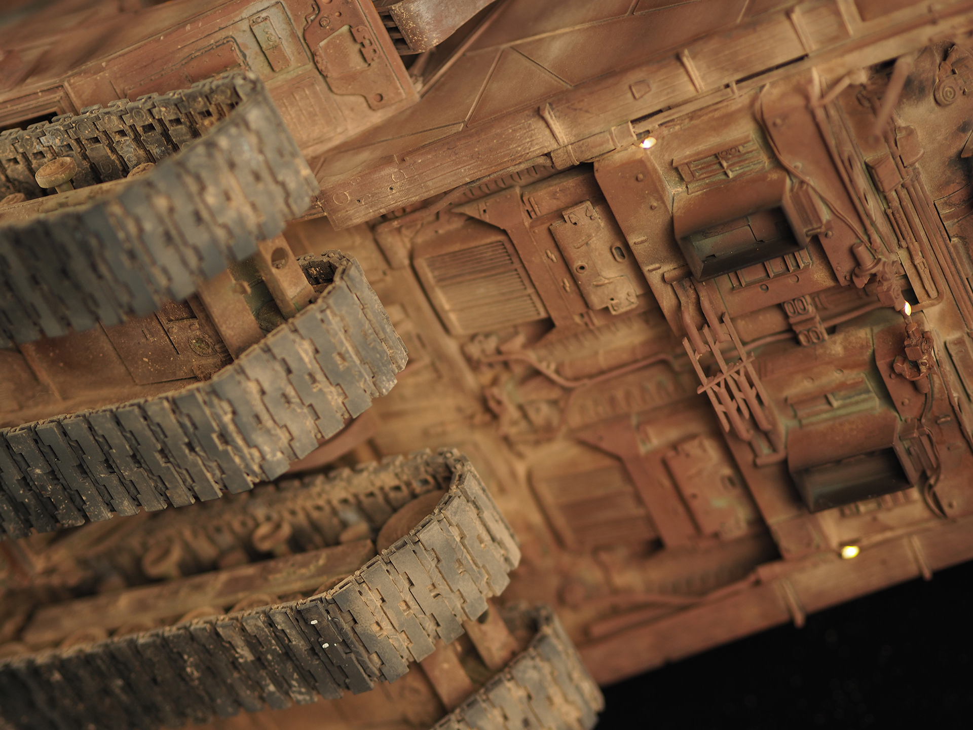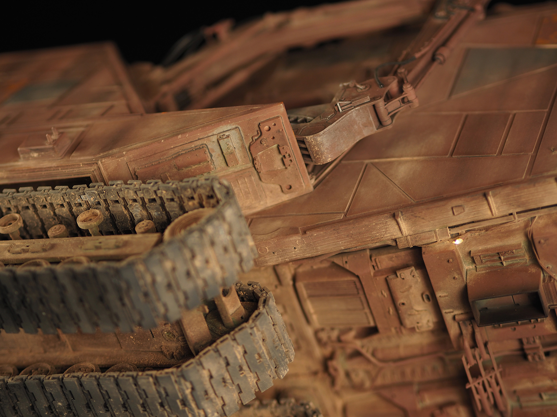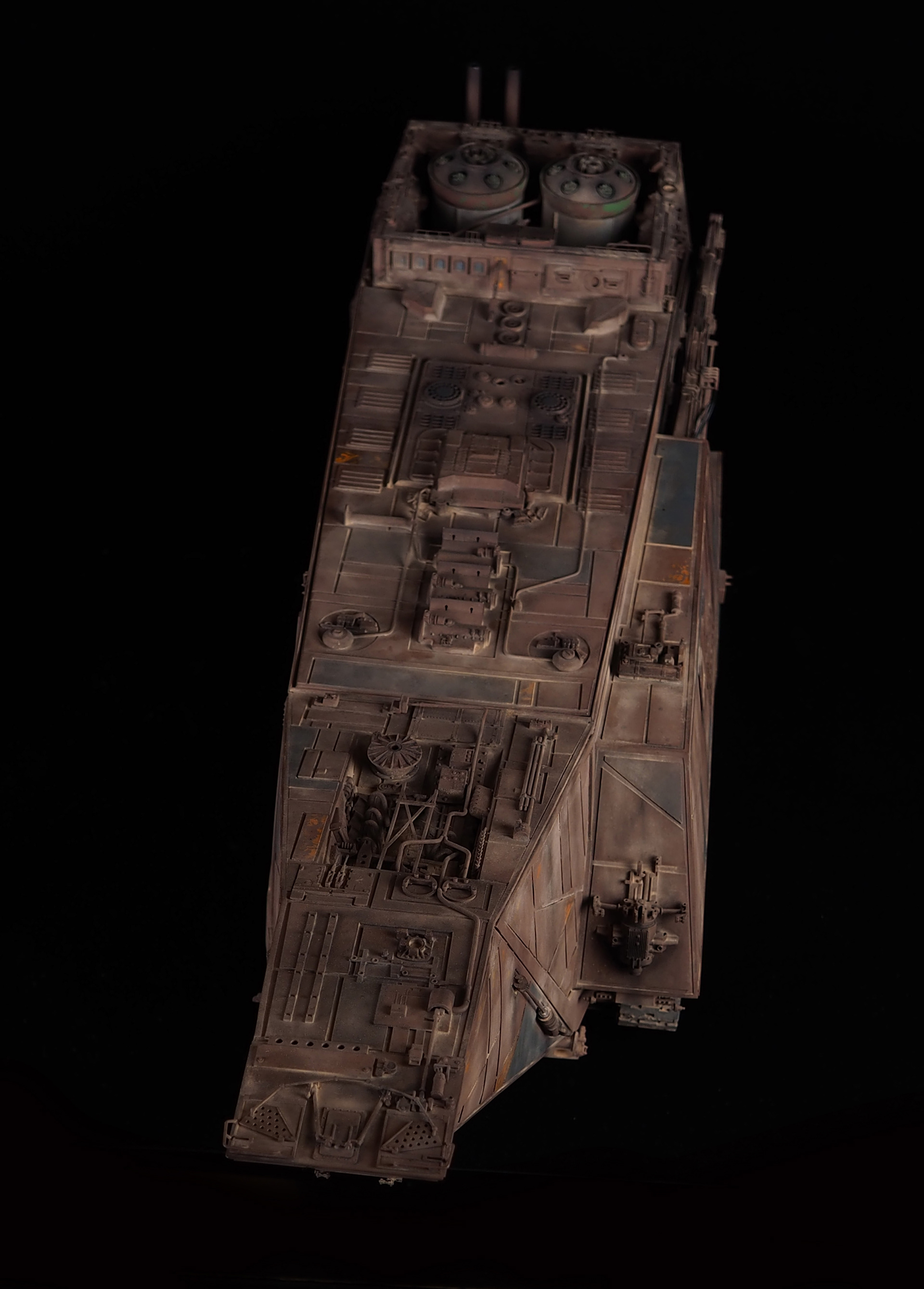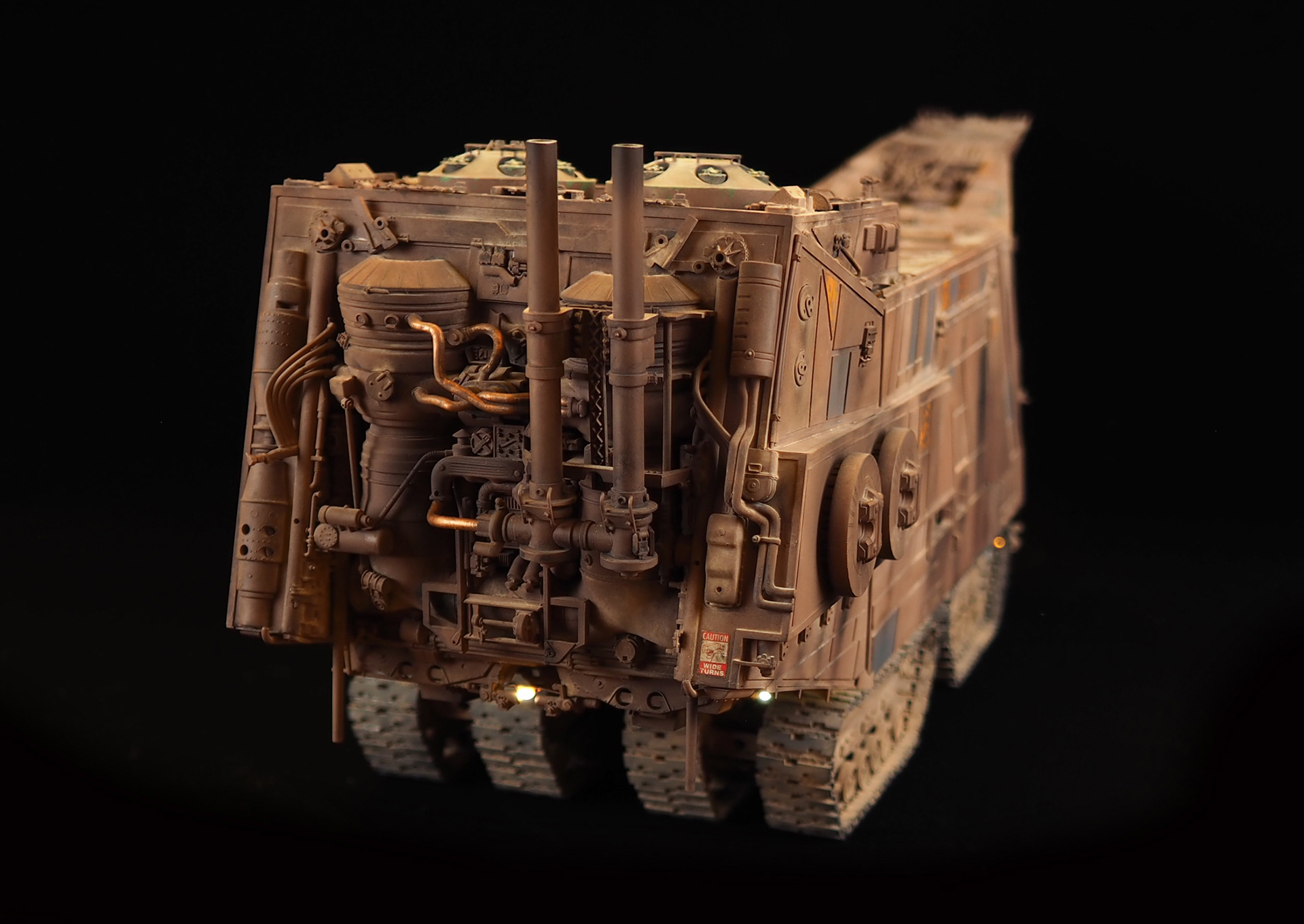 This is my interpretation of the Sandcrawler from Star Wars, as seen in the preproduction painting by Ralph McQuarrie. Much like the sketchbooks featuring the work of Joe Johnston and others, the McQuarrie paintings were and continue to be a massive source of inspiration for me. This model was my first real foray into building an under structure in Rhino and then printing in ABS on an FDM printer. From there I clad the model in styrene and detailed it using traditional techniques. Comically, it’s in scale with the Galoob Jawas, so I threw some in here and there. It took the better part of a year and a half to build the model, and I feel that I grew my digital skill sets tremendously.