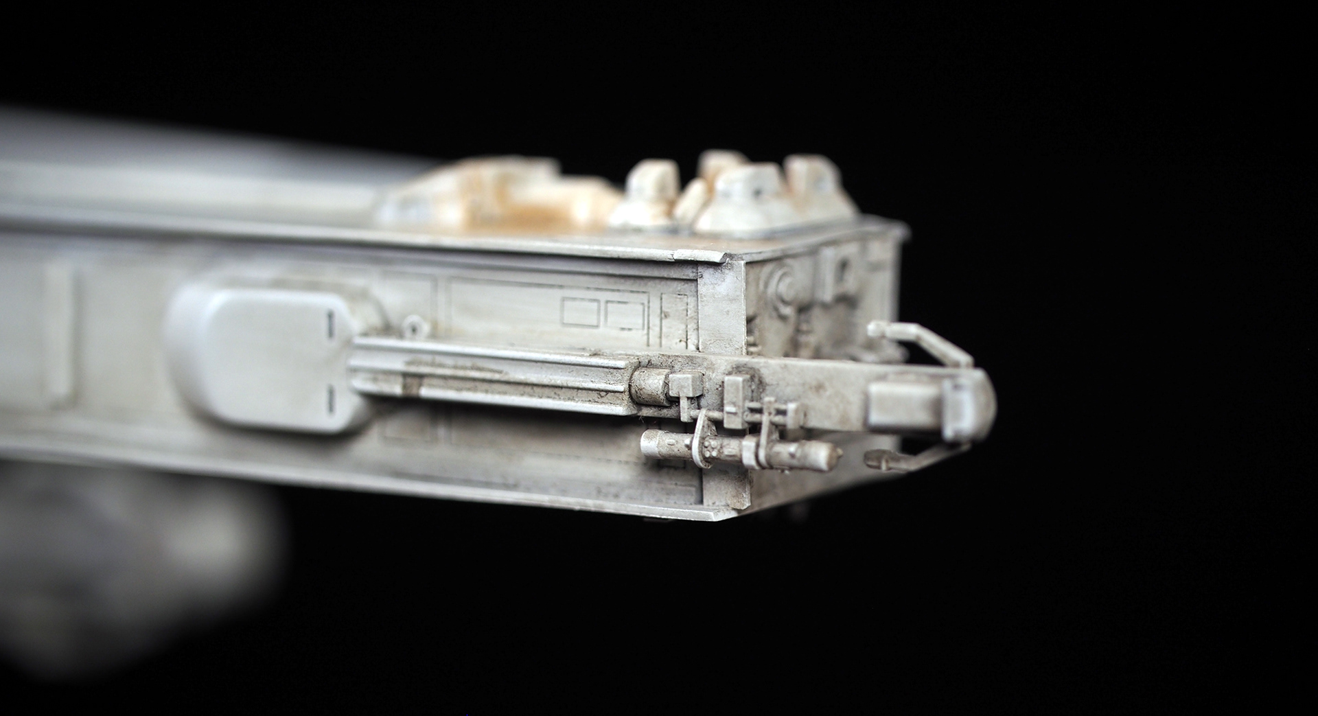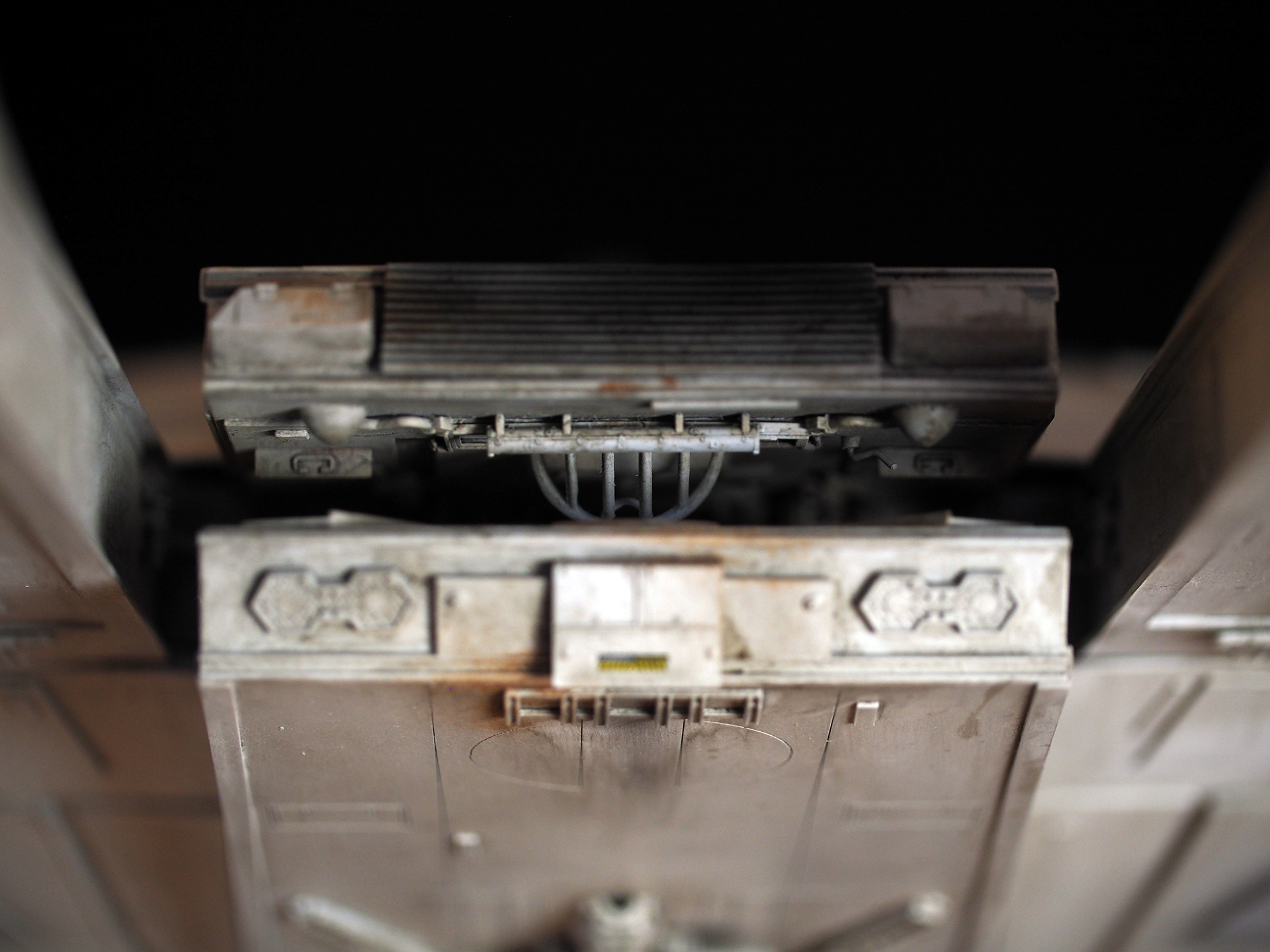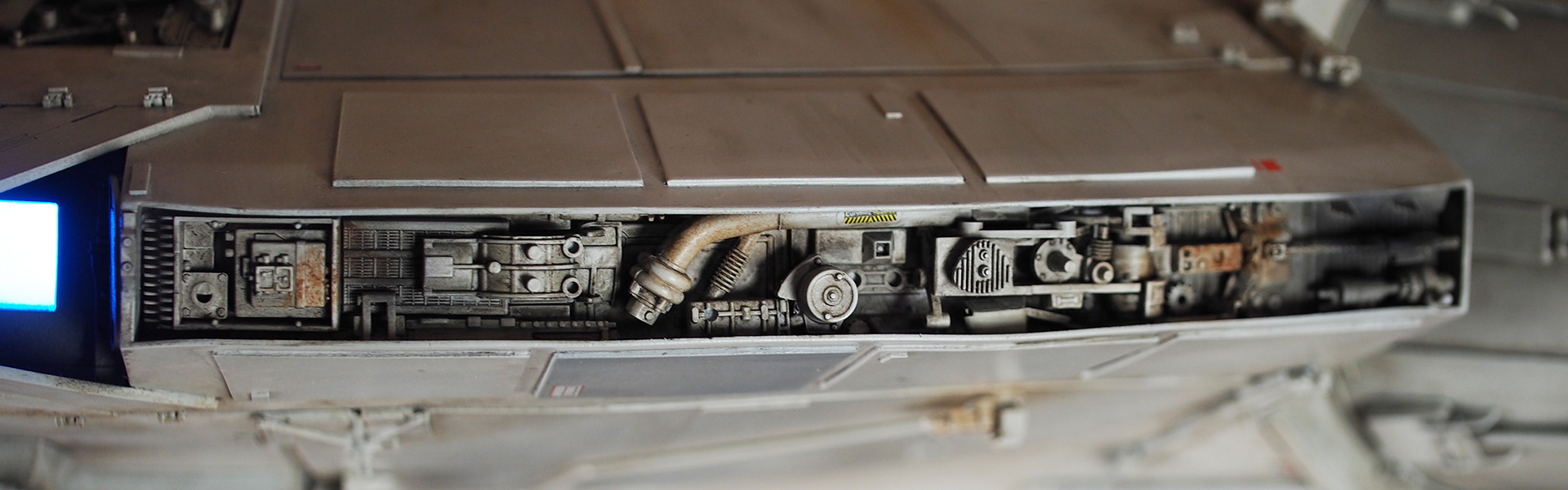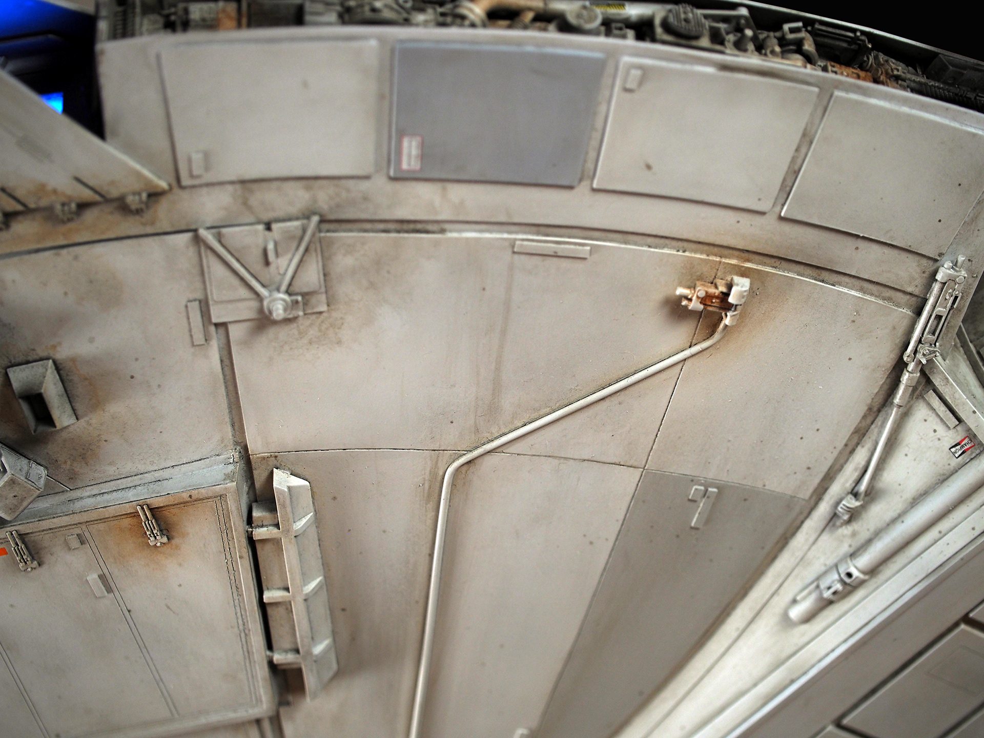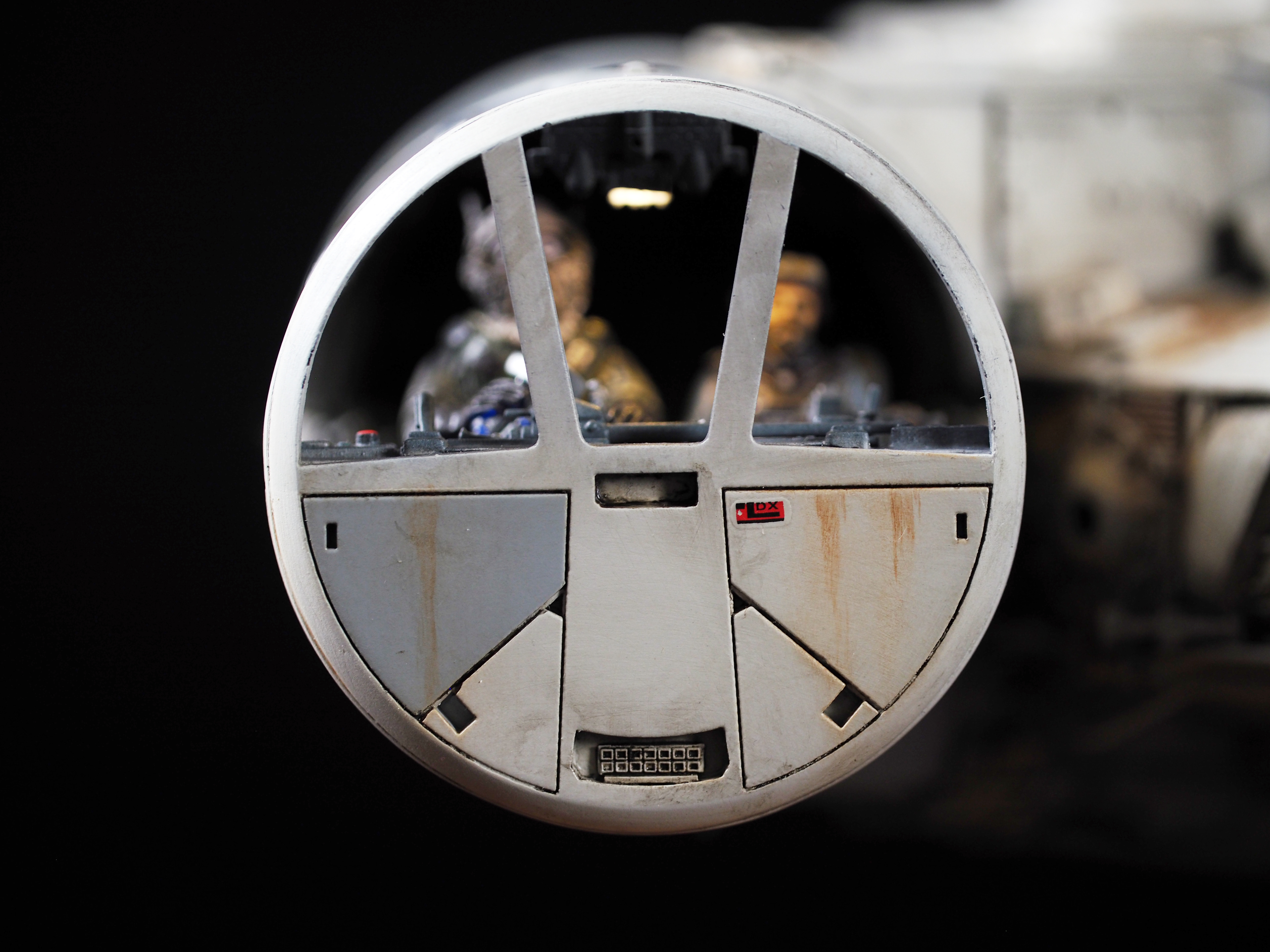 The work of Stinson Lenz was the spark that kicked this project off, as he had designed a McQuarrie Falcon in SketchUp. At that time I did not know any 3D programs, so I purchased the model from him for a very reasonable fee, and enlisted the help of some friends to get things where I needed them to be. John Sabean drew a skeleton and we printed the parts on an FDM printer, Jeff Waclawski and the late Kip Hart converted a few key parts like the cockpit shell and radar dish to STL and grew them on an Objet, Jim Shima solved an electronics requirement to get that even blue engine light the way I wanted, and I (now with Rhino and my own 3D printer at home) grew the remaining parts, laser cut some panels, cut the styrene, clad the saucer, sculpted the figures, and detailed the model as shown. I finished and debuted it at the 2017 Wonderfest in Kentucky. It is my favorite model so far, and I hope you relish it as much as I !