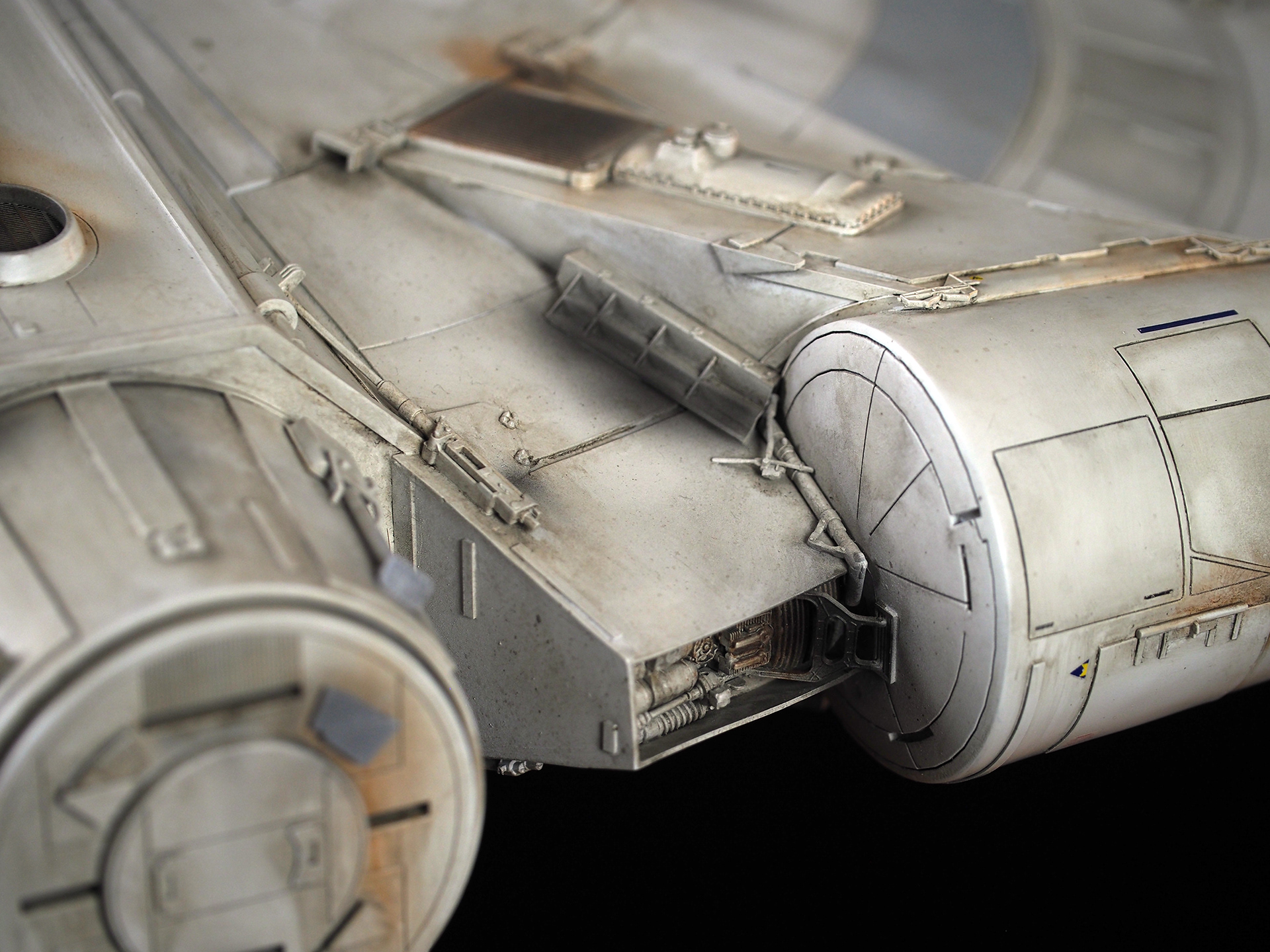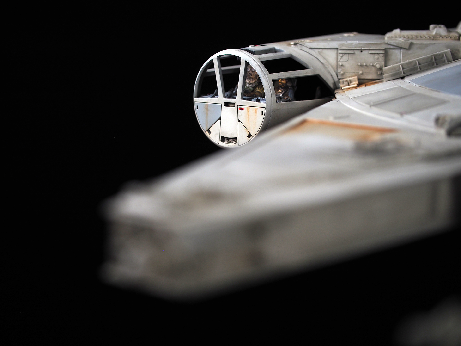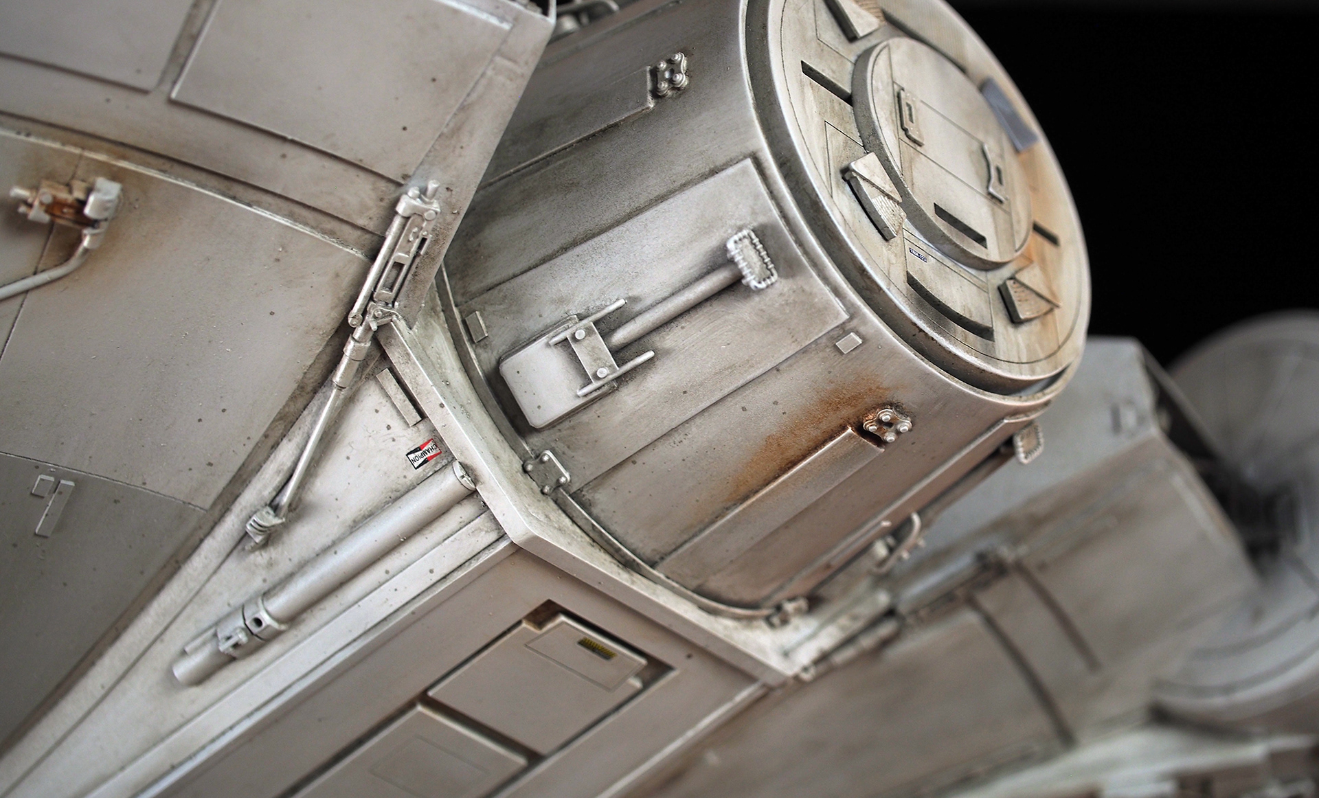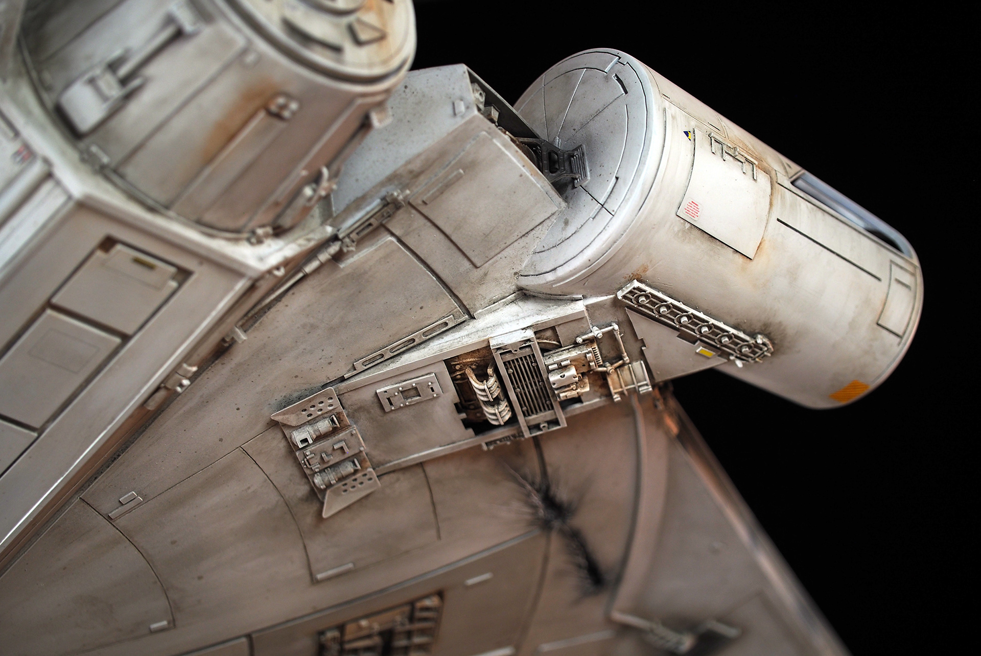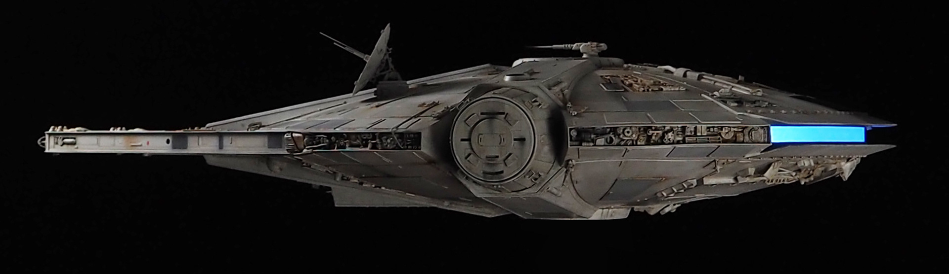 This is one of those projects that I have subconsciously been preparing for since I was a little kid, spending all those hours with the Star Wars Sketchbook and various printed materials that showed Ralph McQuarrie’s work. His Star Wars portfolio made a huge impact on me. The Millennium Falcon was designed and finished so quickly, and is such an iconic ship, that it was surreal and almost heretical to make this “variation on a theme”. It is my attempt to make the ship that existed as a design concept, using McQuarrie and Johnston pieces to pull cues from.