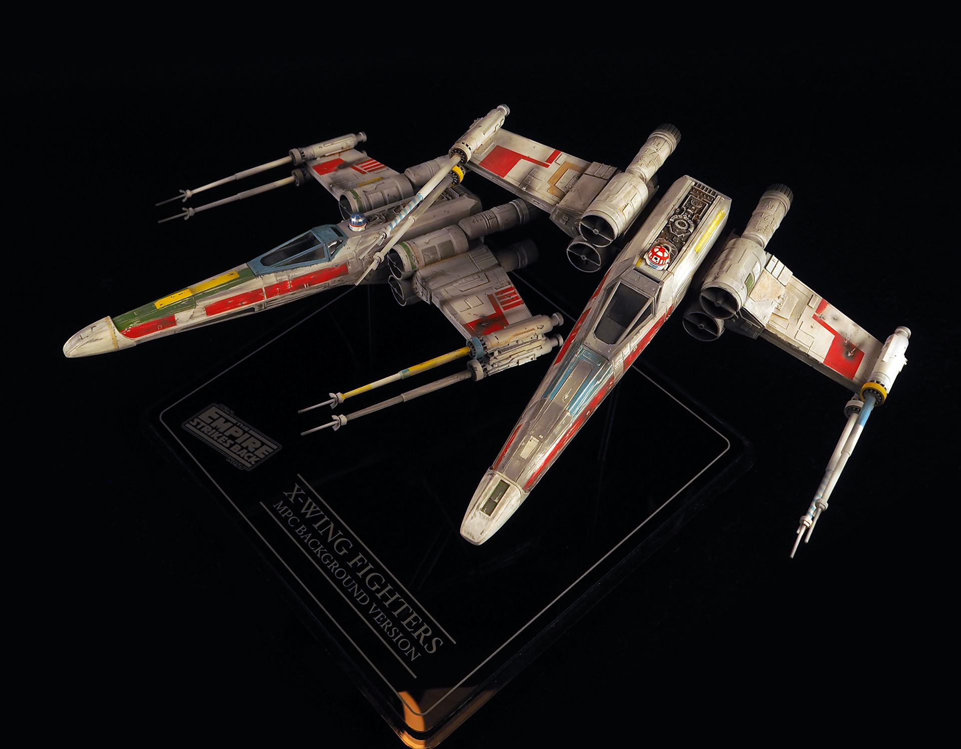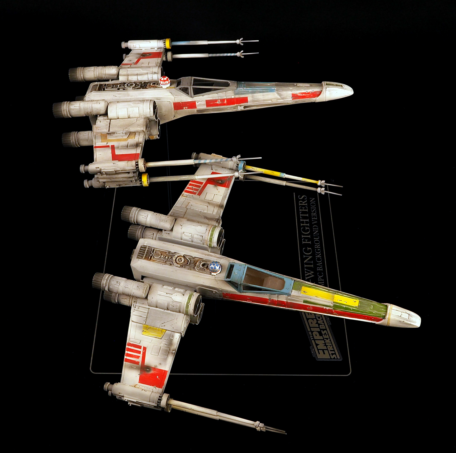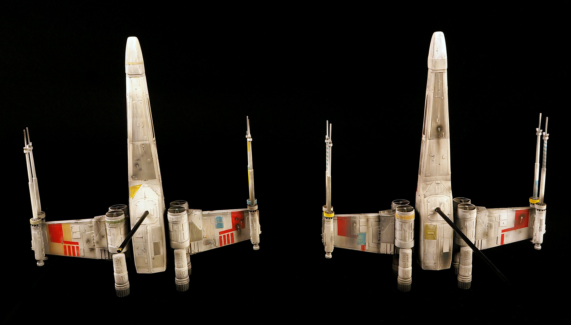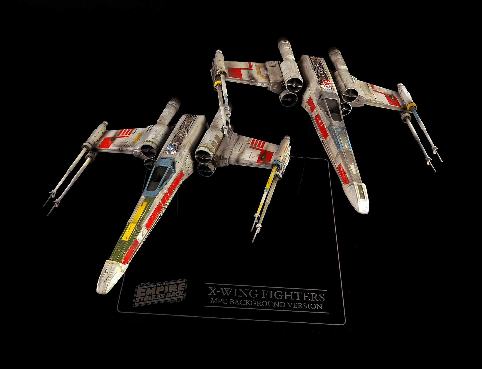 For The Empire Strikes Back, ILM used MPC model kits for the closed wing X-Wings in the scene where the Rebel Transport escapes Hoth. They were also employed throughout Empire and Jedi in other areas as well. Surviving examples are “all over the place” in comparison to the “established” hero liveries of the models made for the first film, so I decided to have some fun and just paint them as I wished. So these are NOT specific to any ILM painted examples, and I sleep at night just fine 😉