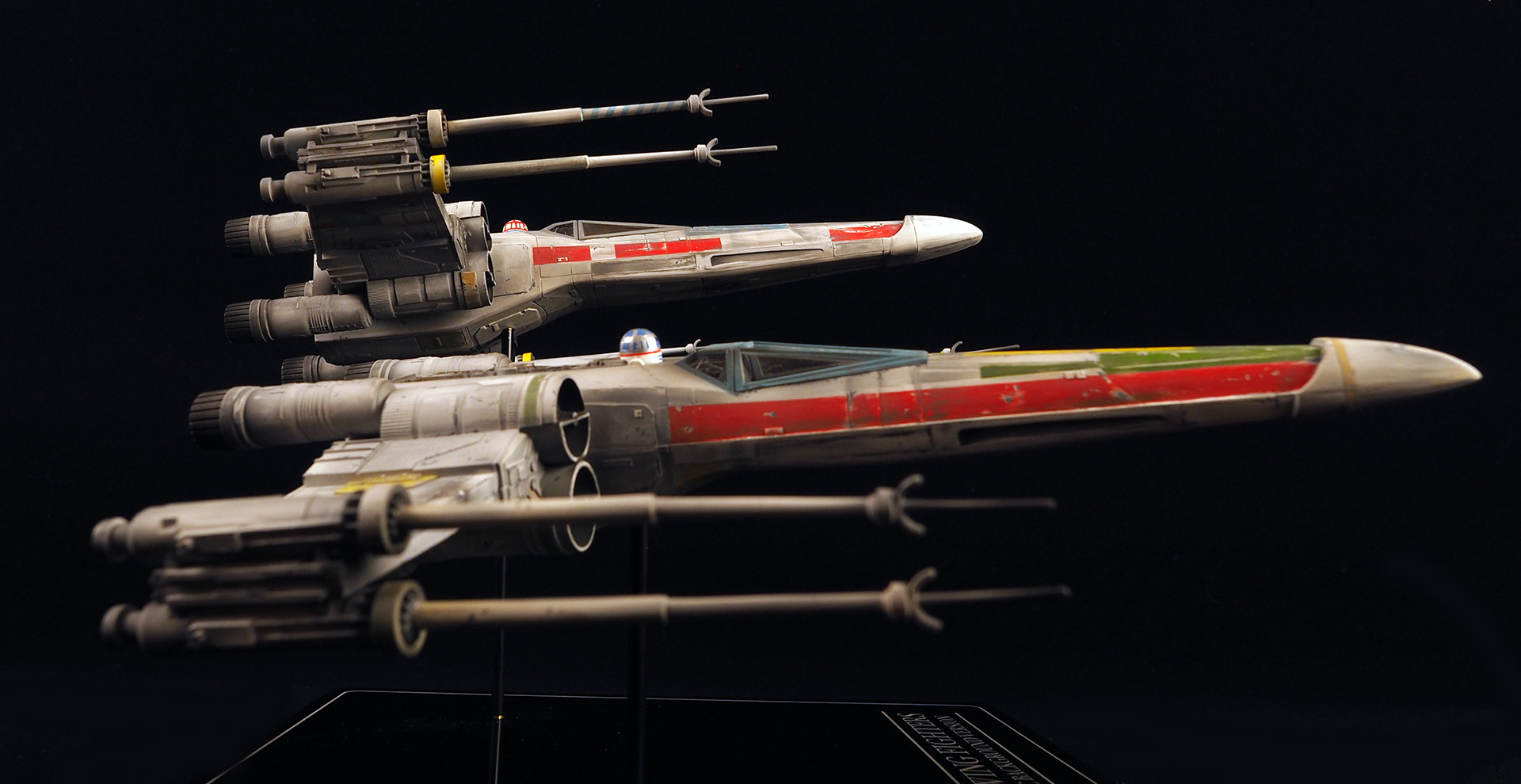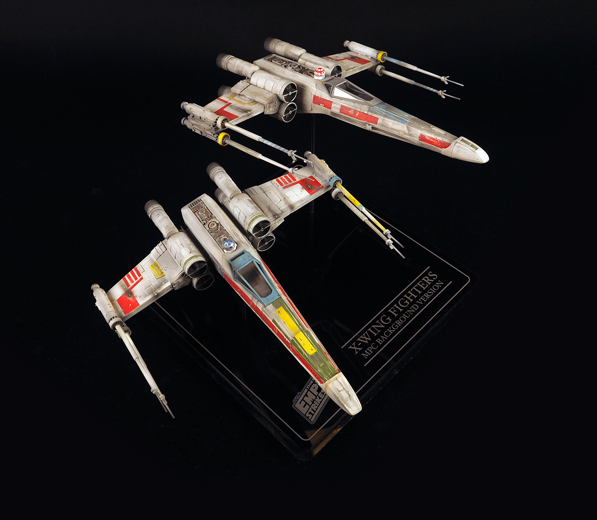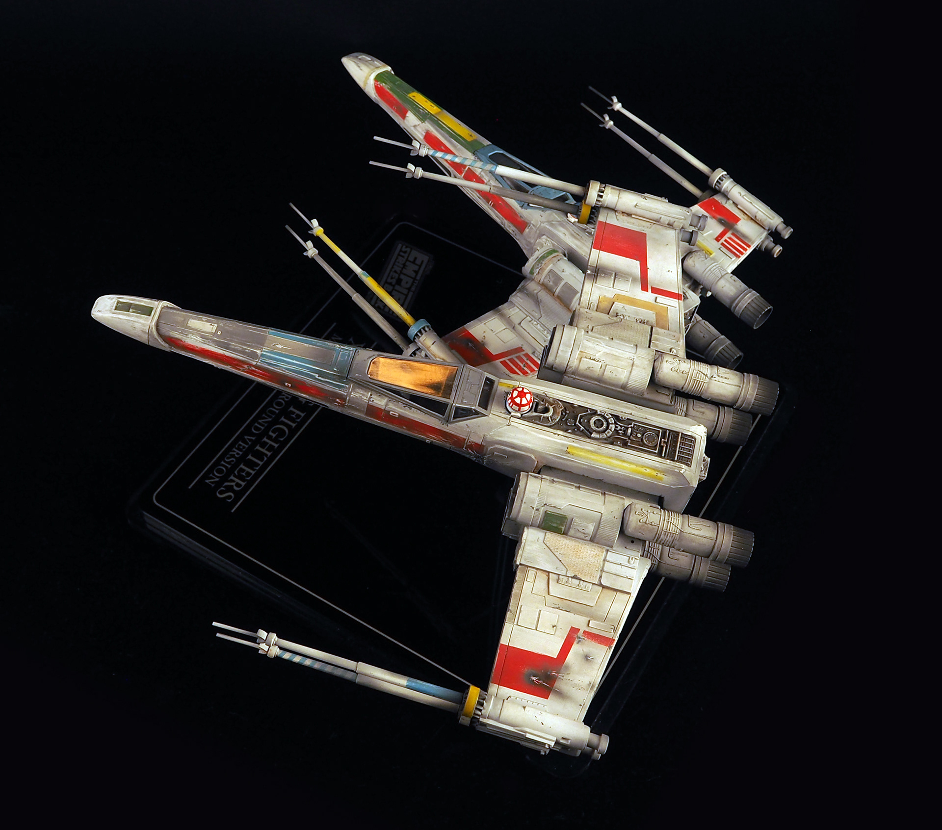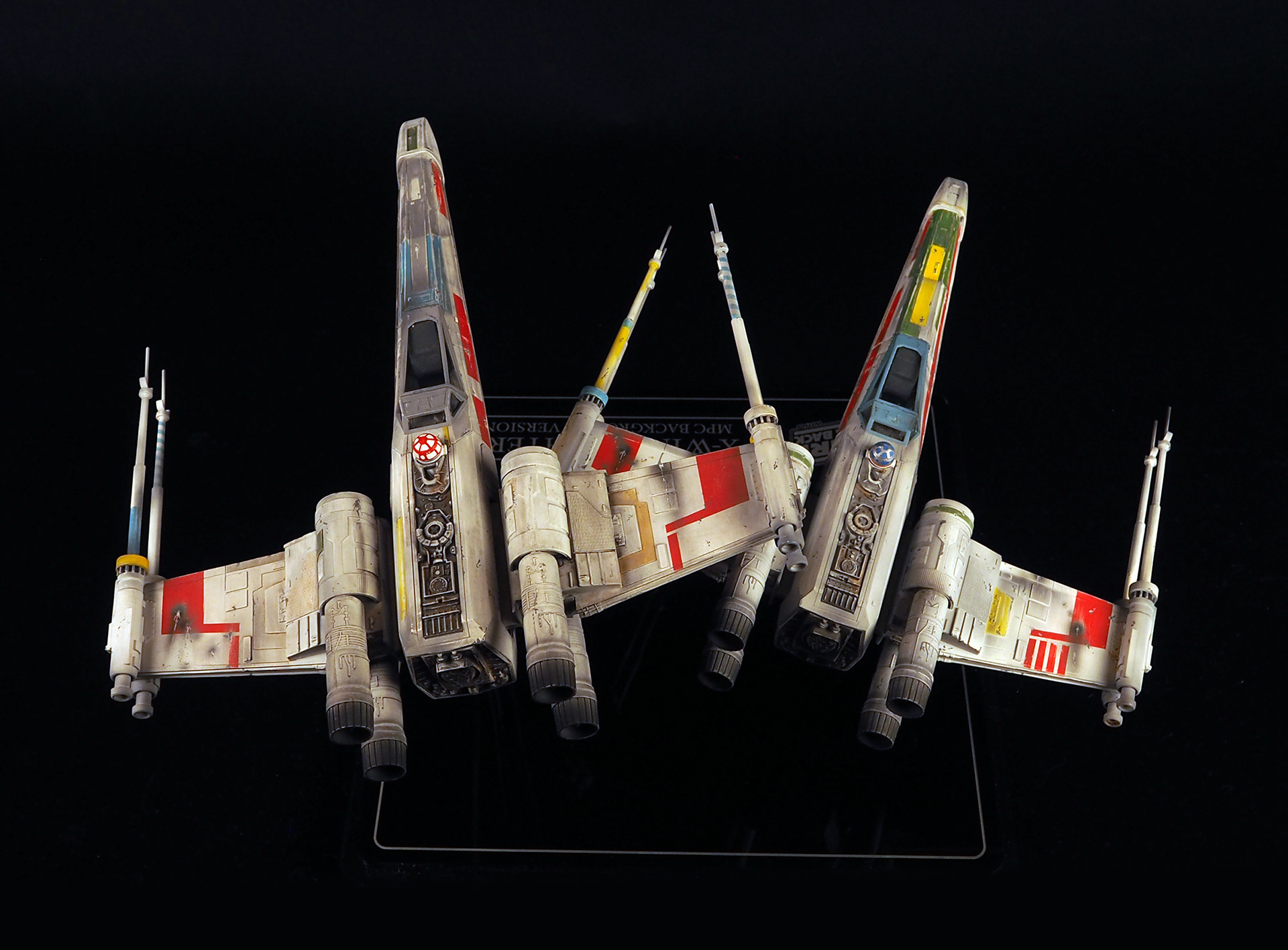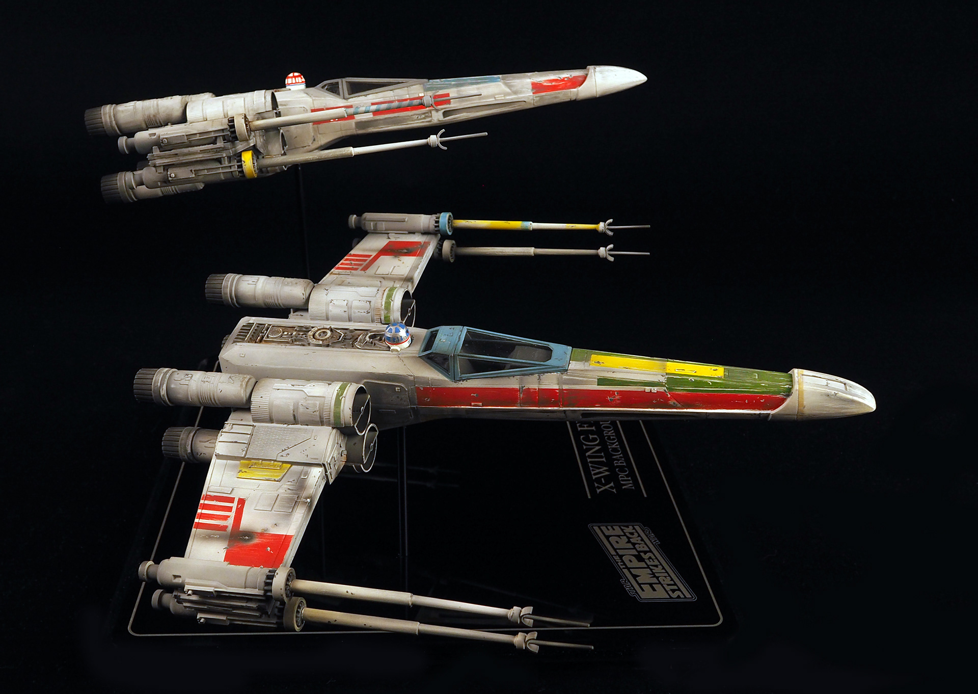 For The Empire Strikes Back, ILM used MPC model kits for the closed wing X-Wings in the scene where the Rebel Transport escapes Hoth. They were also employed throughout Empire and Jedi in other areas as well. Surviving examples are “all over the place” in comparison to the “established” hero liveries of the models made for the first film, so I decided to have some fun and just paint them as I wished. So these are NOT specific to any ILM painted examples, and I sleep at night just fine 😉