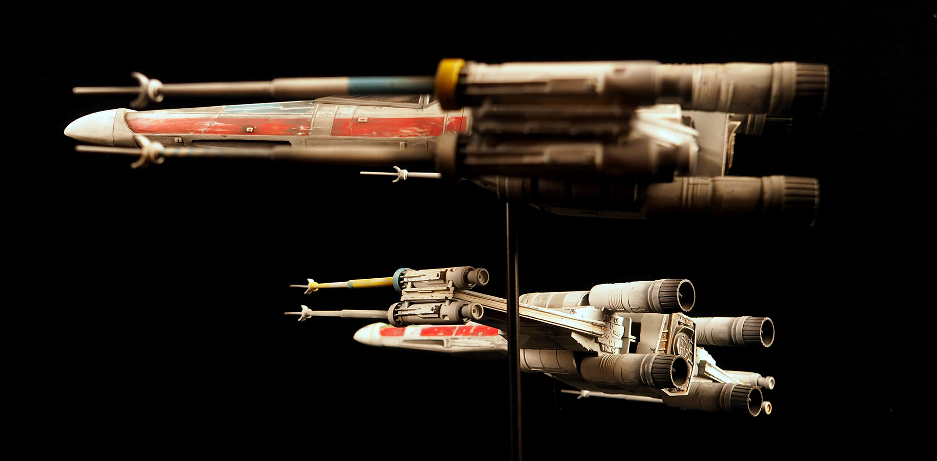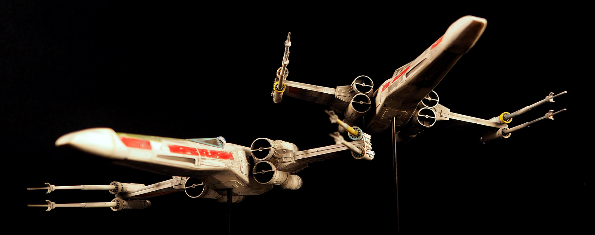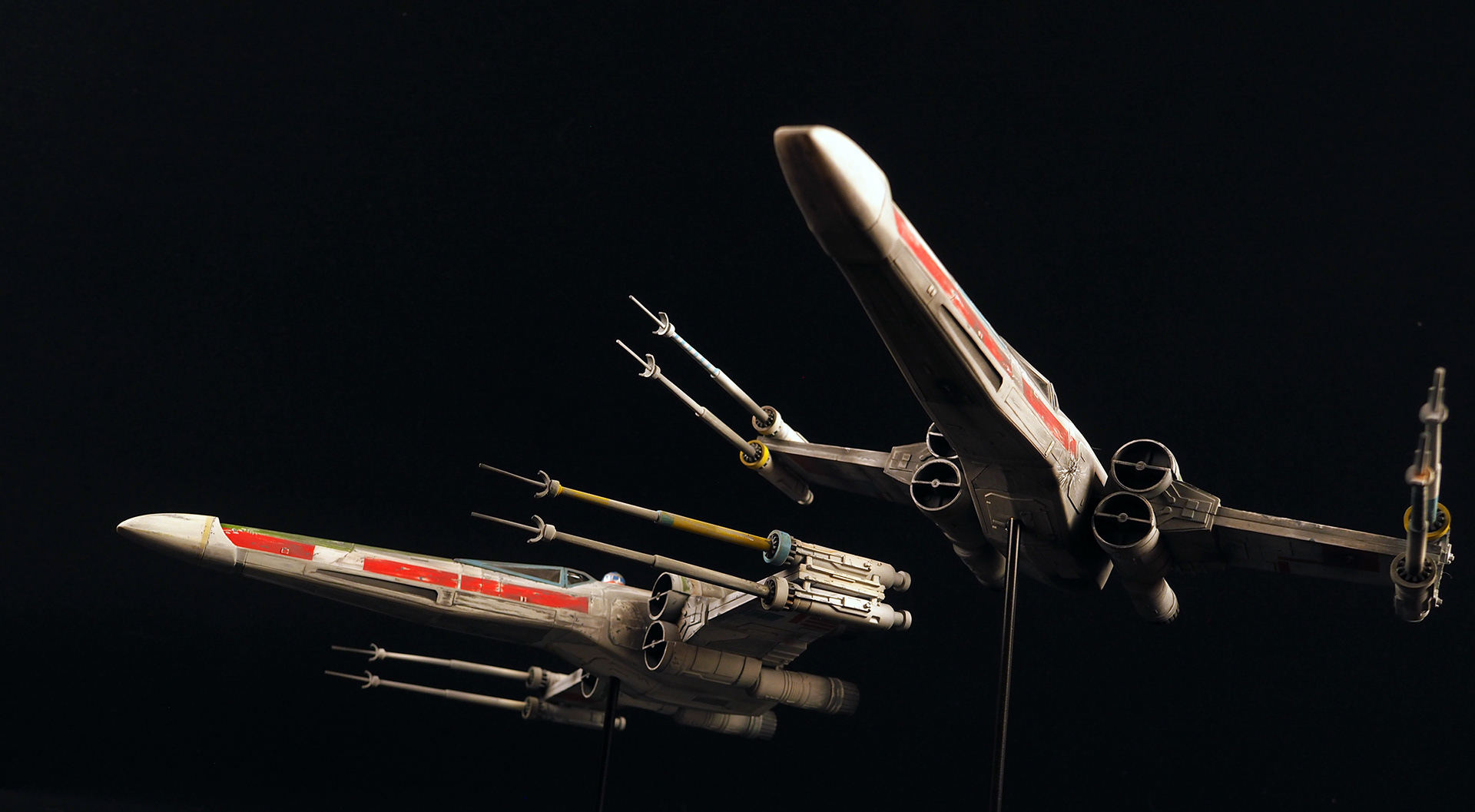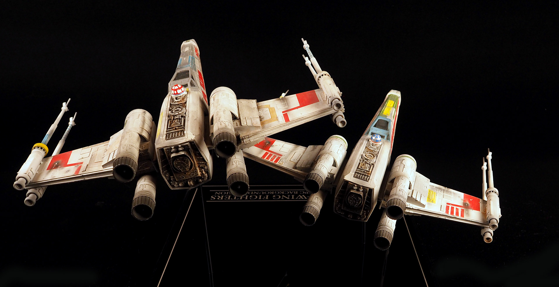 For The Empire Strikes Back, ILM used MPC model kits for the closed wing X-Wings in the scene where the Rebel Transport escapes Hoth. They were also employed throughout Empire and Jedi in other areas as well. Surviving examples are “all over the place” in comparison to the “established” hero liveries of the models made for the first film, so I decided to have some fun and just paint them as I wished. So these are NOT specific to any ILM painted examples, and I sleep at night just fine 😉