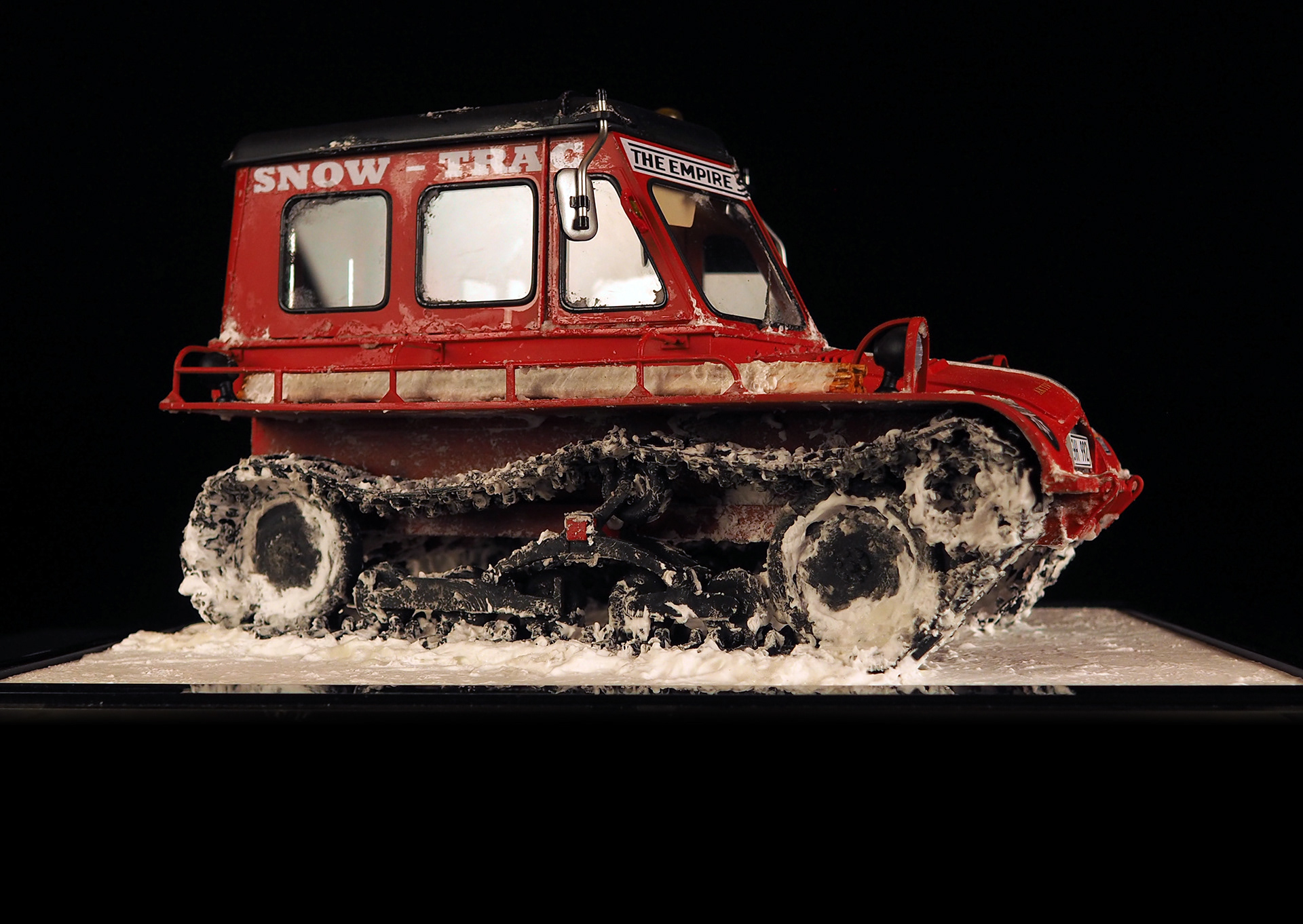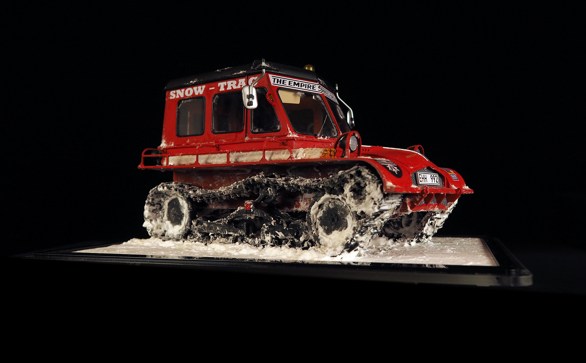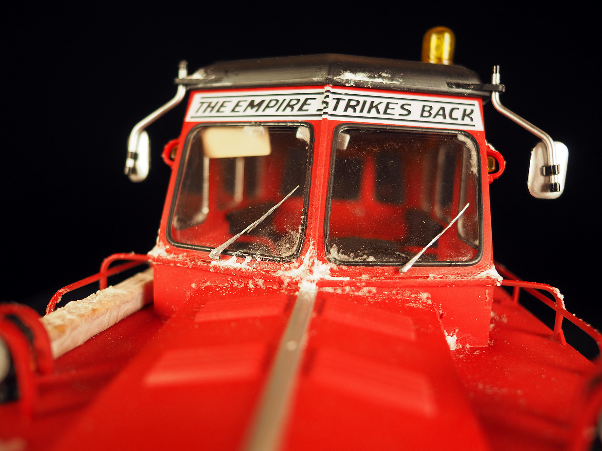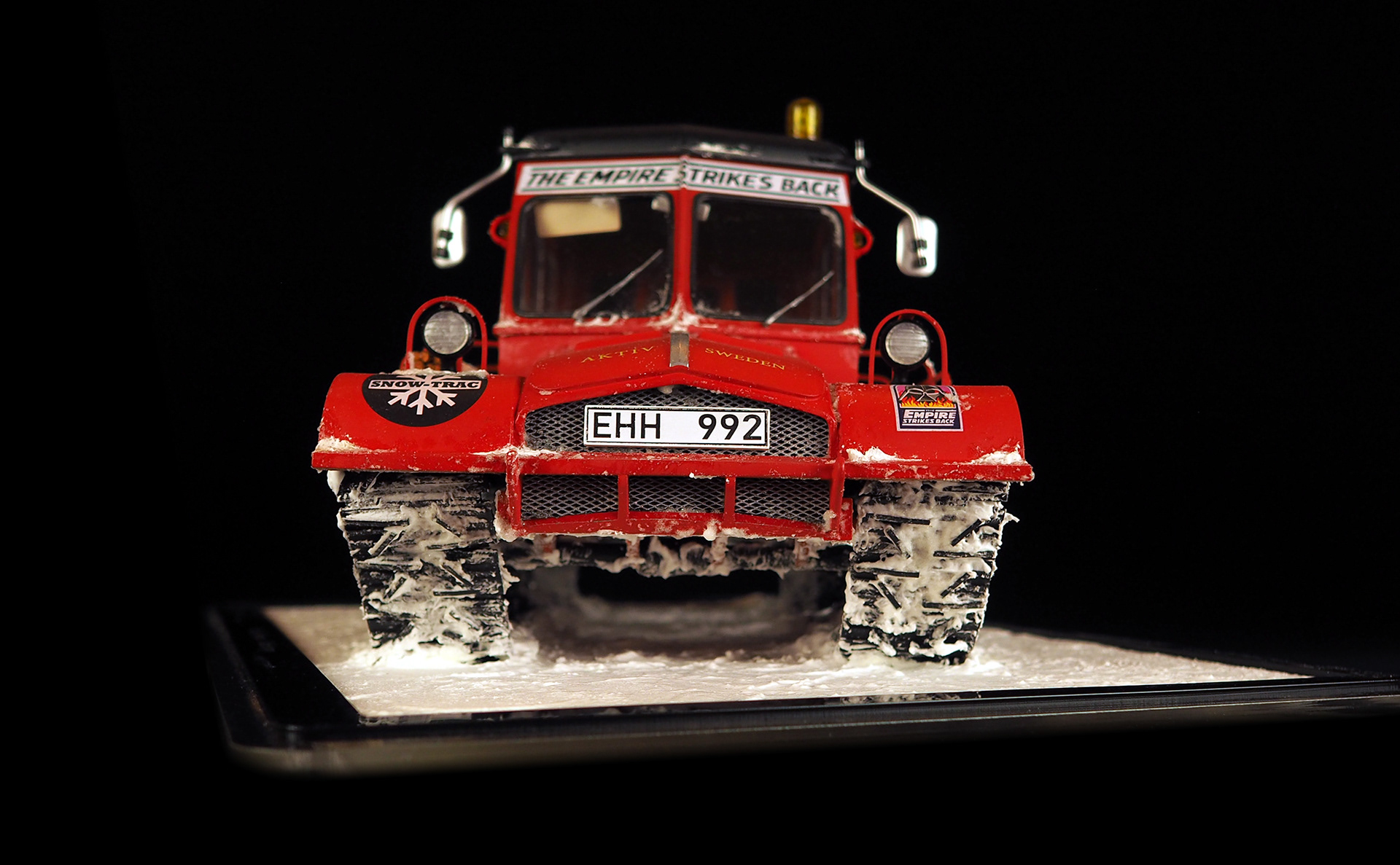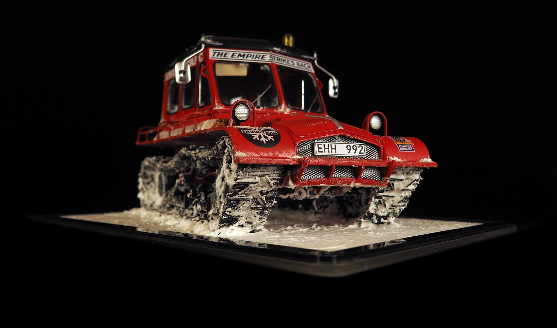 This is a 1/12th replica of the Snow-Trac used in the Finse Norway filming location during the making of The Empire Strikes Back. The main body was modeled by Stinson Lenz, as he is very skilled at matching the more obtuse reference and he’s frankly incredible at 3D design. I fleshed it out, added the snow and other details, and am very happy with the results! It’s a deep cut for sure, and a fun homage to imagery that we all somehow seem to know, as Star Wars fans.