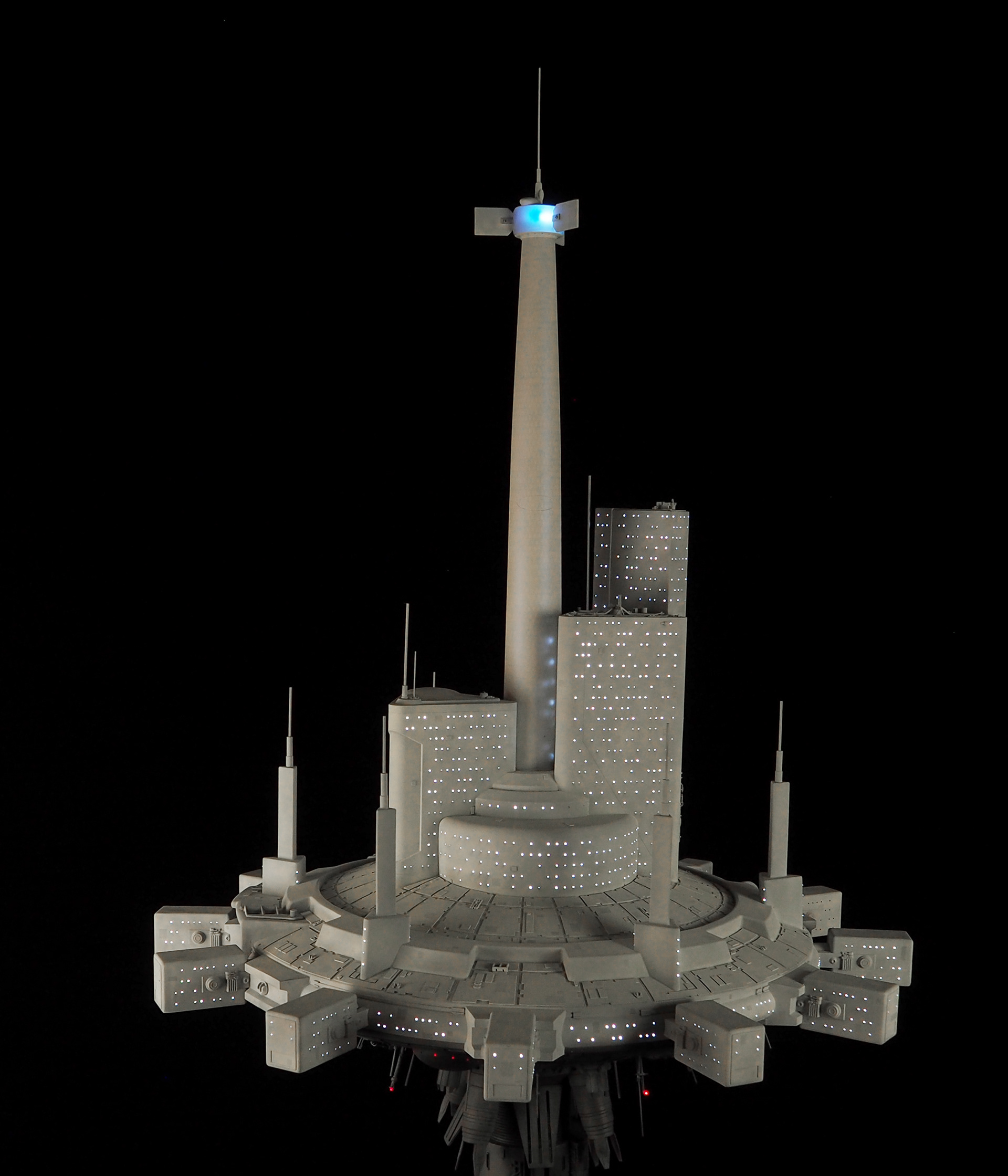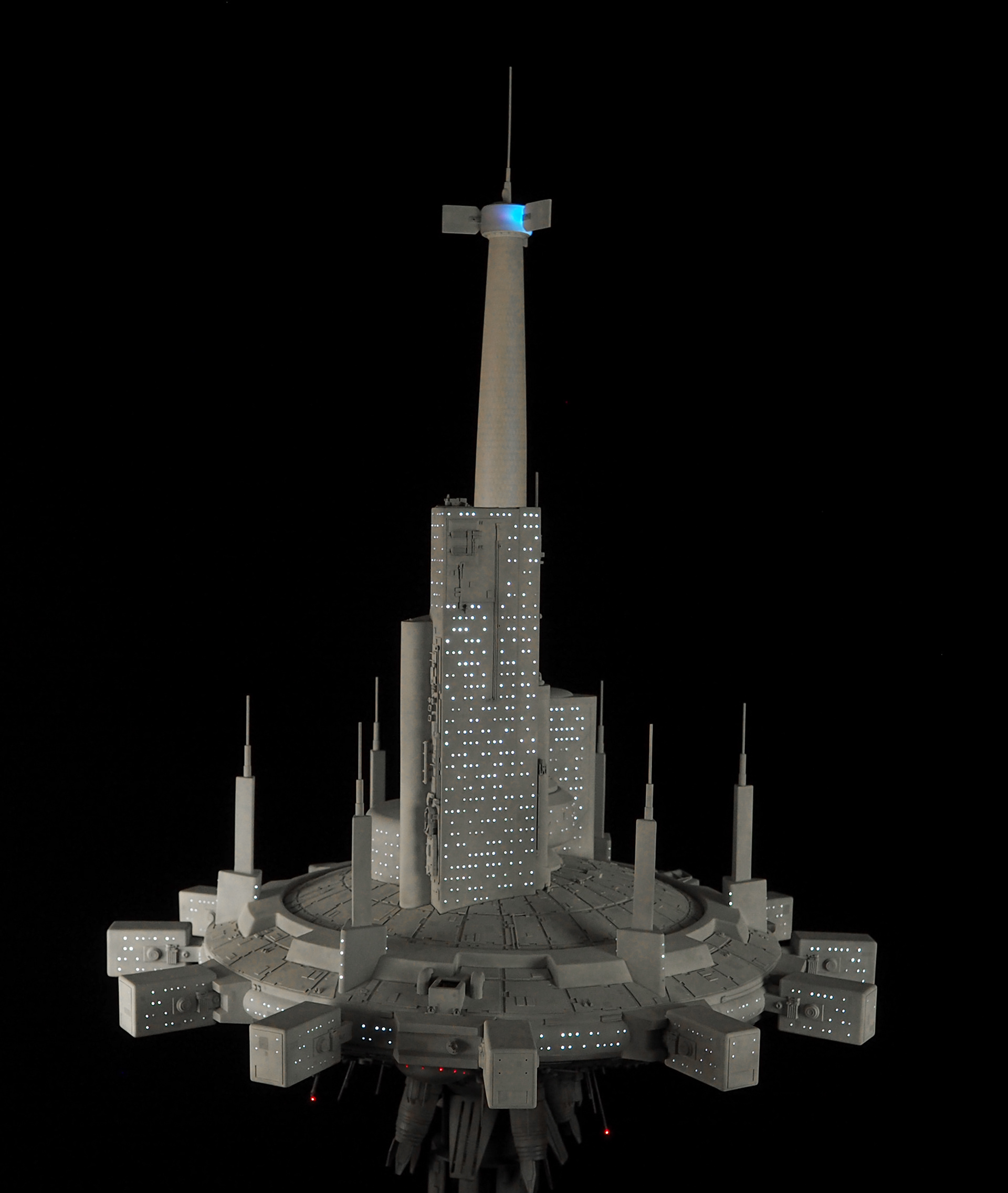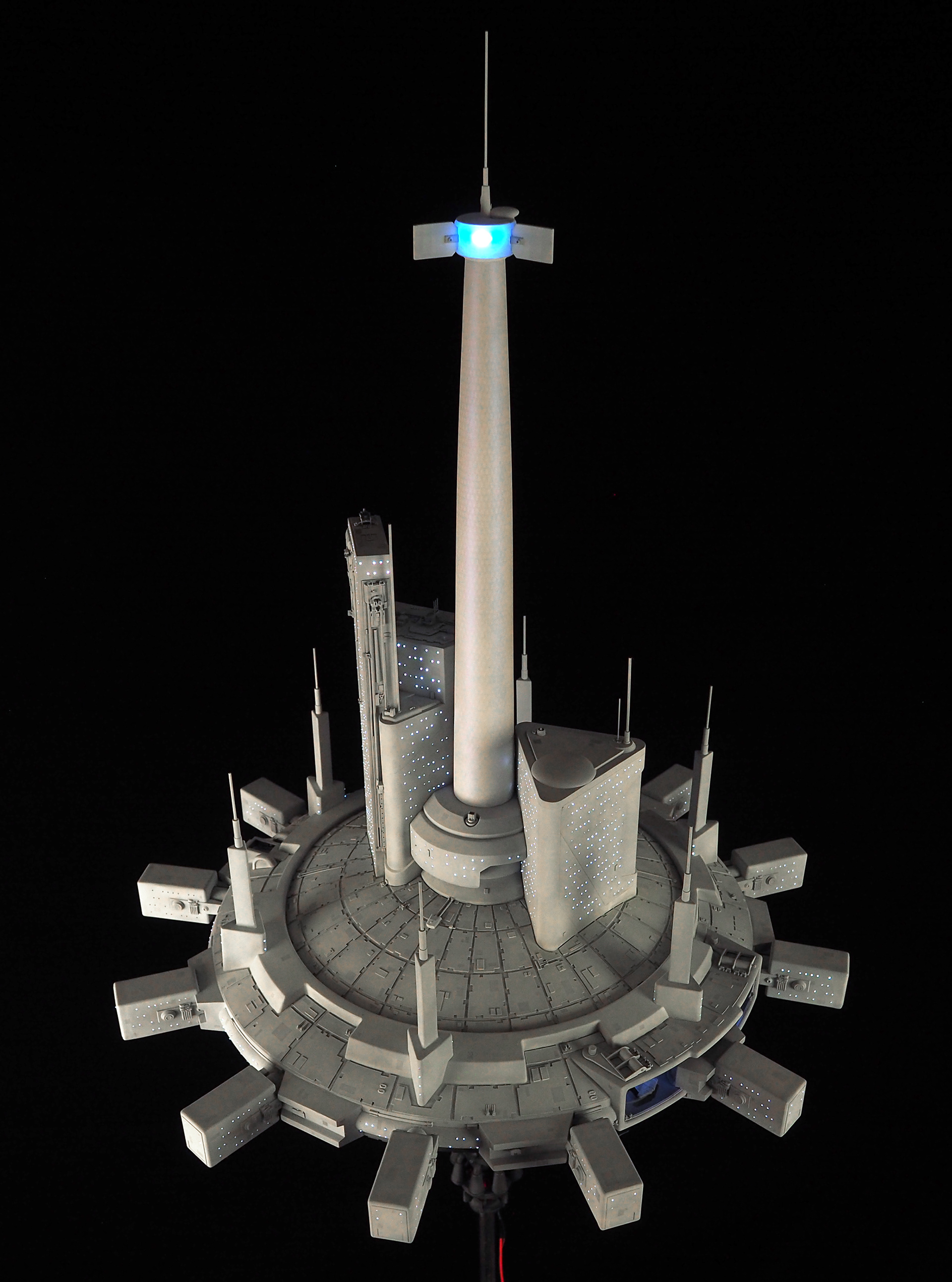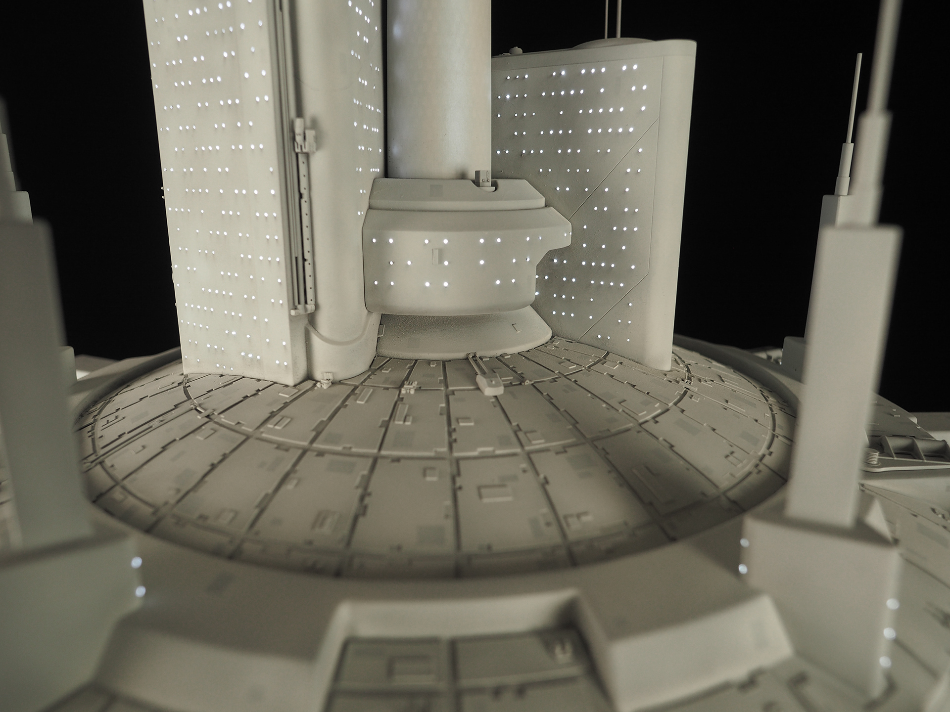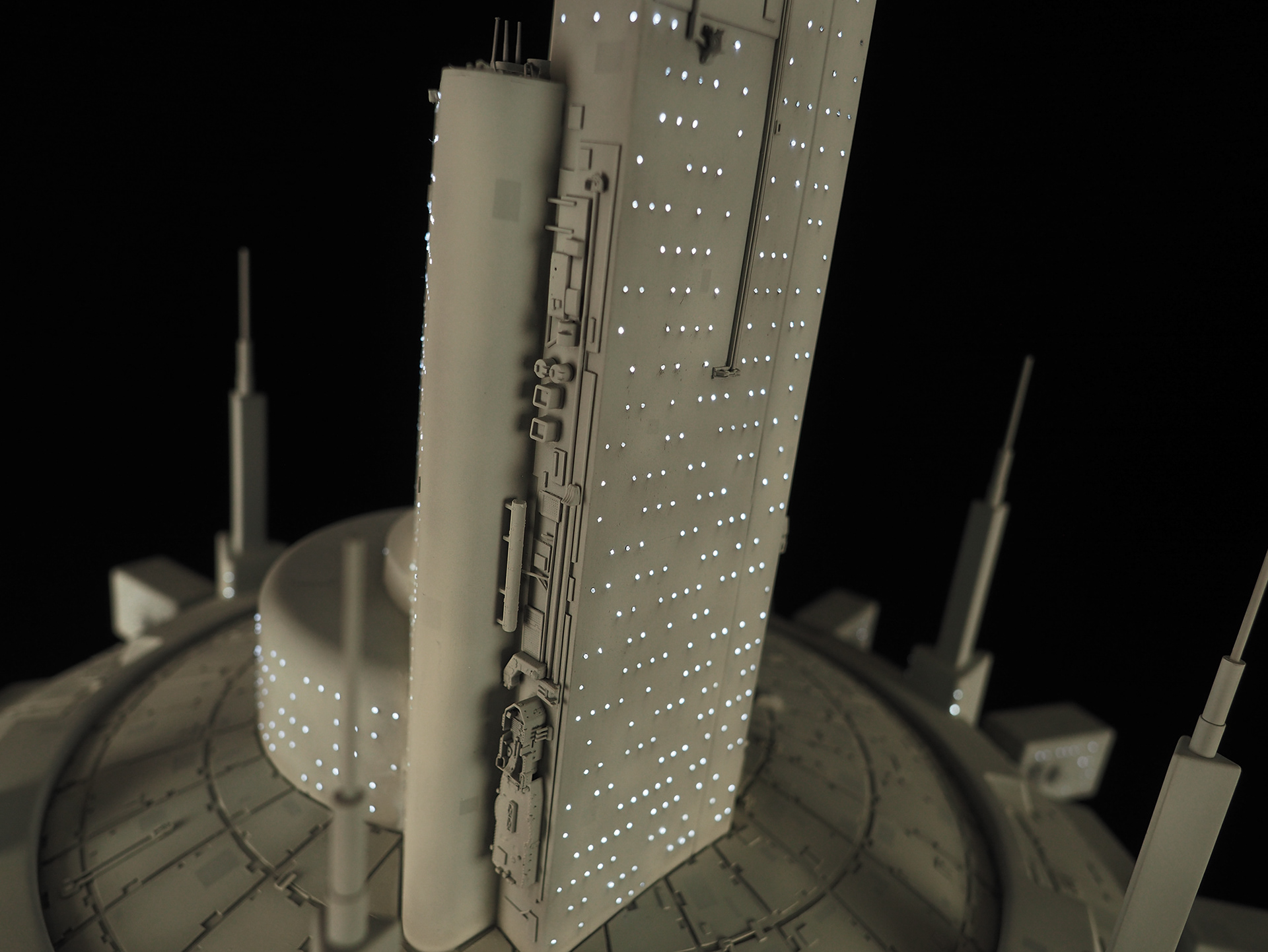 This is the Starlight Beacon, a three foot tall miniature made in the first half of 2021, under the direction of the Lucasfilm Story Group. Yes, ladies and germs, my personal fantasy of being hired by Lucasfilm to make a studio model is now reality! Designed using traditional model making skills as well as 3D design and part fabrication, my job was to translate three pieces of production art into a lit set piece for the High Republic Show, on starwars.com. Everything rides on an internal metal armature with side and bottom mount options, all lights run off of a 12 volt power supply, and there are so many exciting details both inside and out! Be sure to watch the episode of The High Republic where I talk about this model, and the article on starwars.com as well.Many thanks to Stinson Lenz for his loan of the Dowager Queen model file for the landing bay easter egg, and Josh Maruska for his ace Arduino skills which lit that beacon!