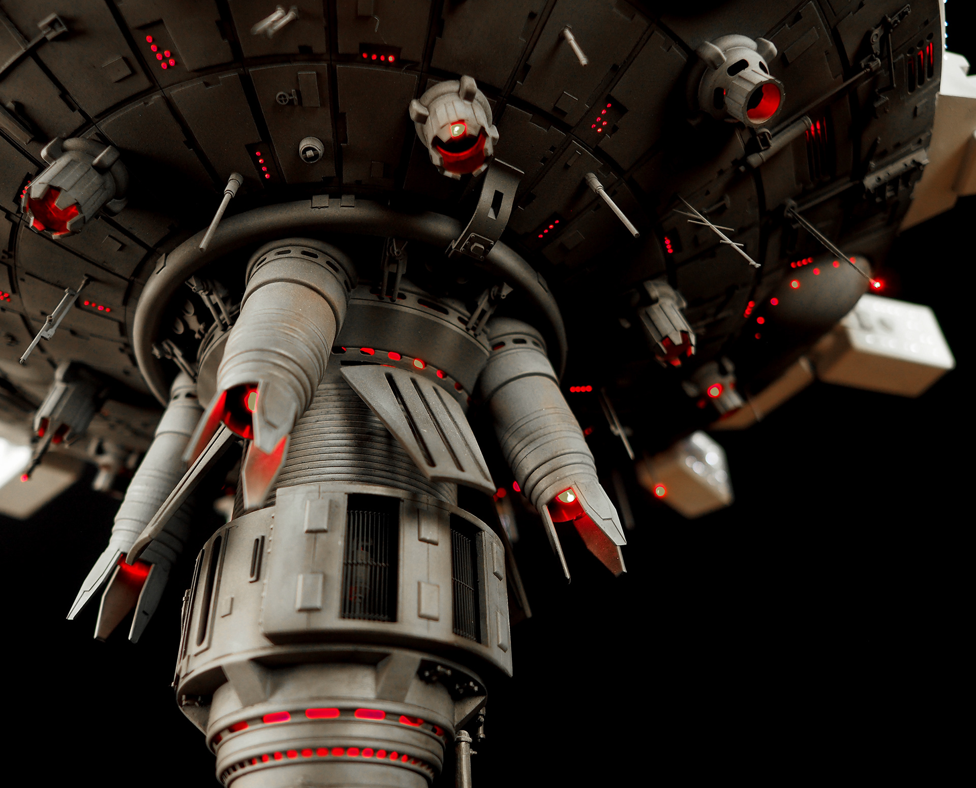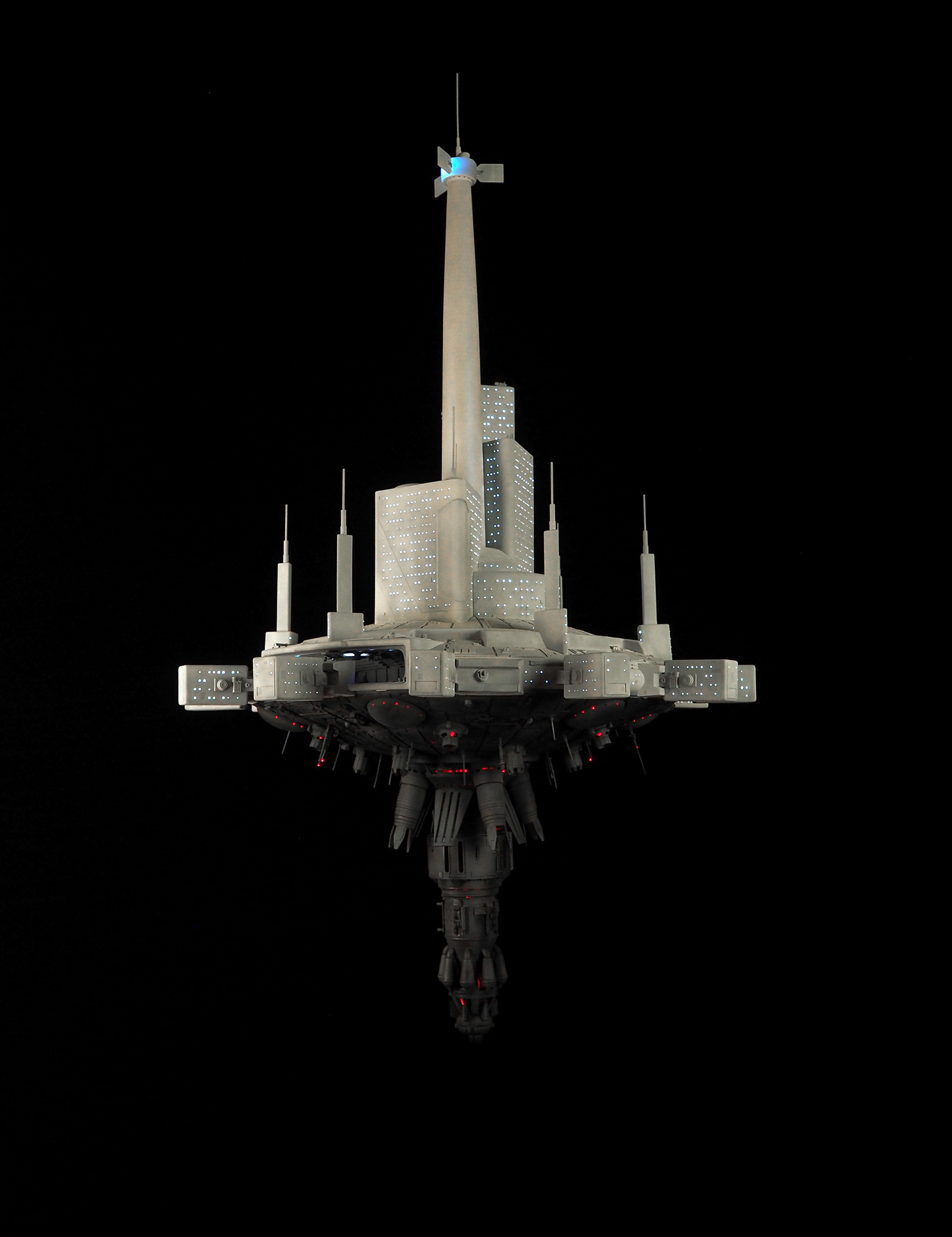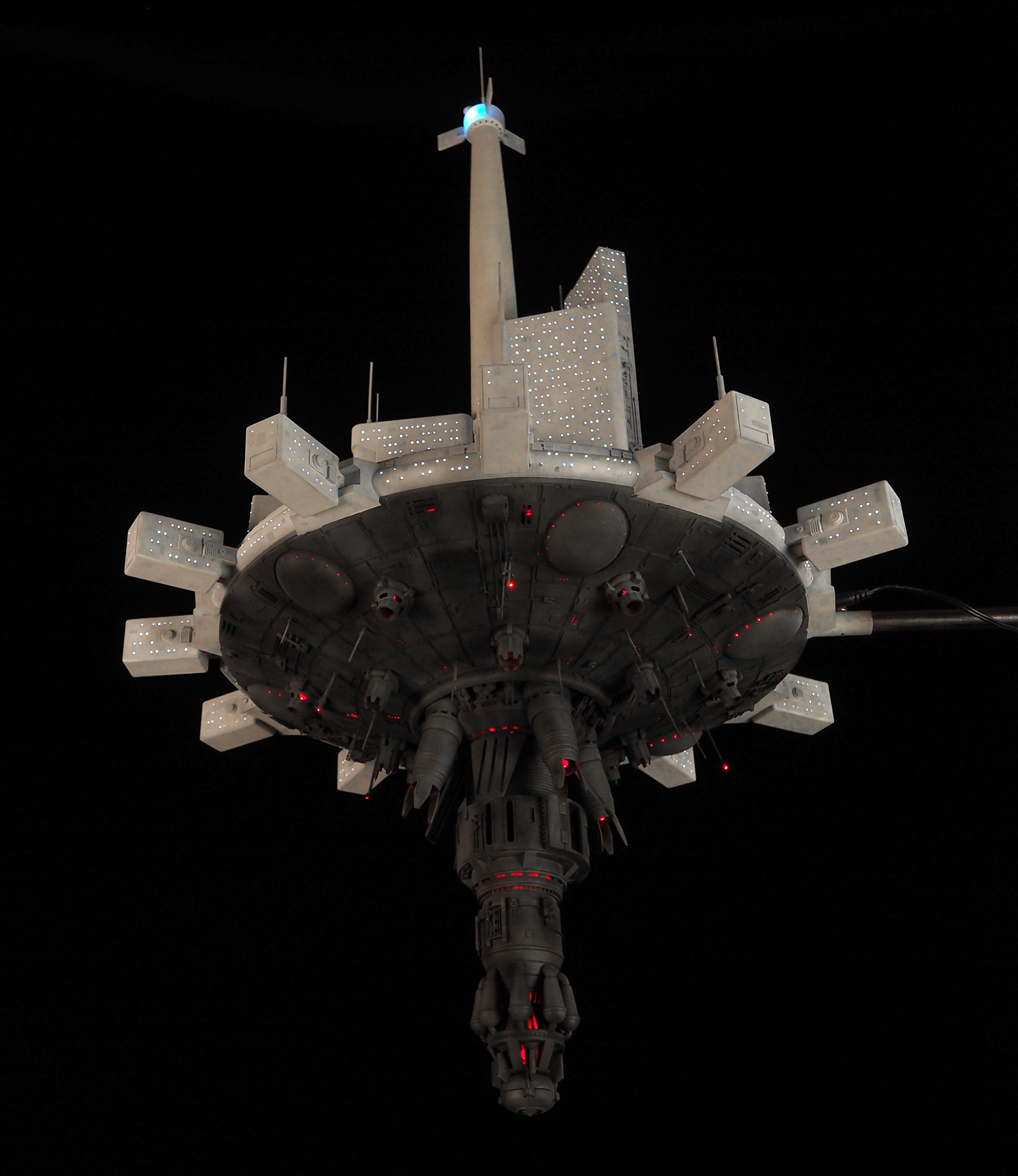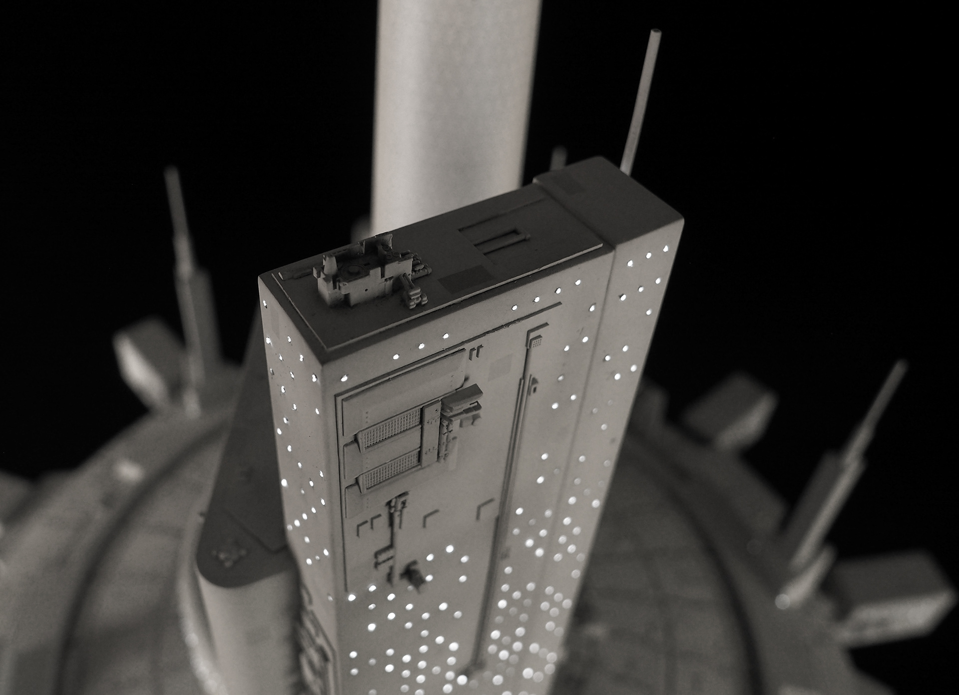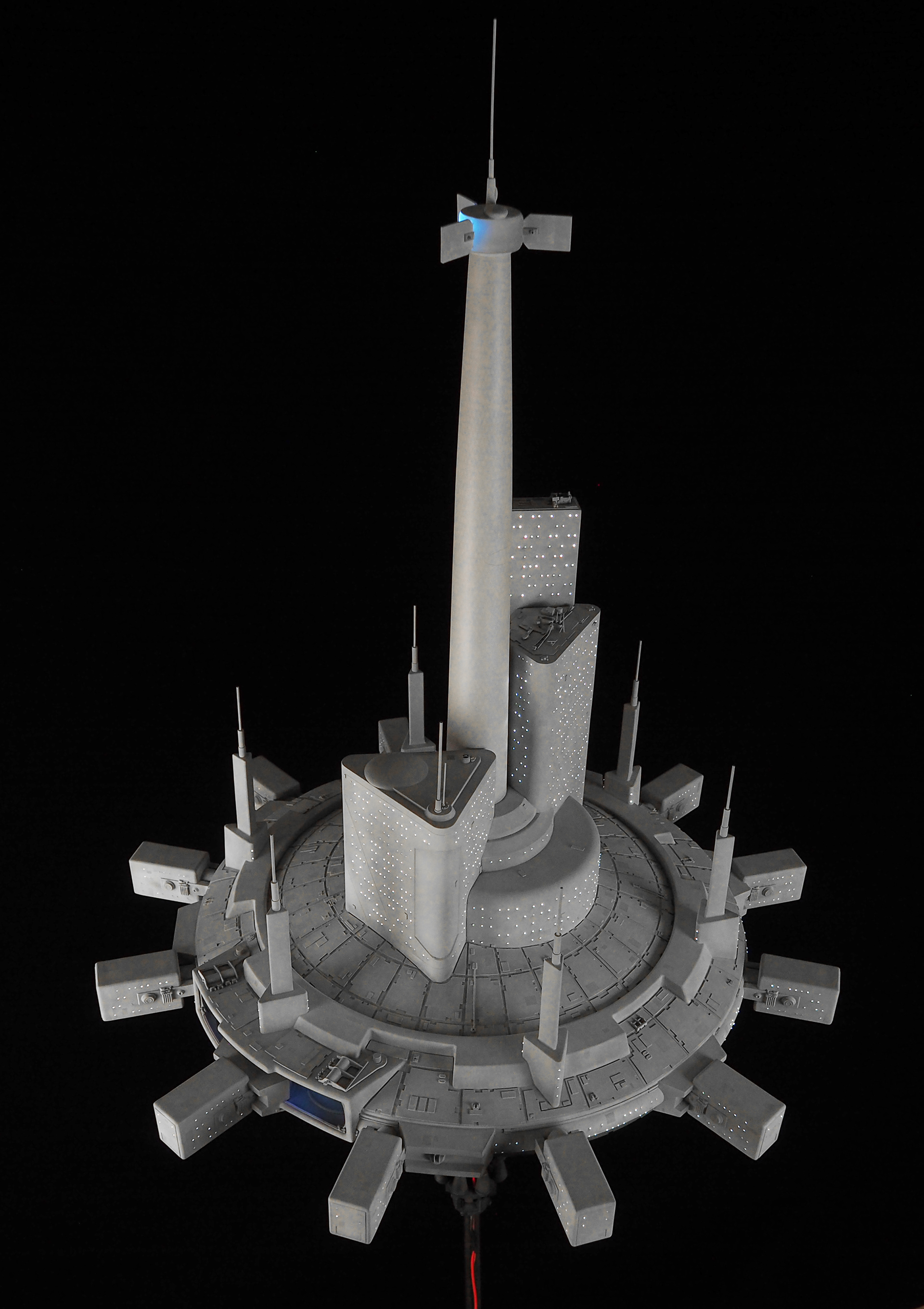 This is the Starlight Beacon, a three foot tall miniature made in the first half of 2021, under the direction of the Lucasfilm Story Group. Yes, ladies and germs, my personal fantasy of being hired by Lucasfilm to make a studio model is now reality! Designed using traditional model making skills as well as 3D design and part fabrication, my job was to translate three pieces of production art into a lit set piece for the High Republic Show, on starwars.com. Everything rides on an internal metal armature with side and bottom mount options, all lights run off of a 12 volt power supply, and there are so many exciting details both inside and out! Be sure to watch the episode of The High Republic where I talk about this model, and the article on starwars.com as well.Many thanks to Stinson Lenz for his loan of the Dowager Queen model file for the landing bay easter egg, and Josh Maruska for his ace Arduino skills which lit that beacon!