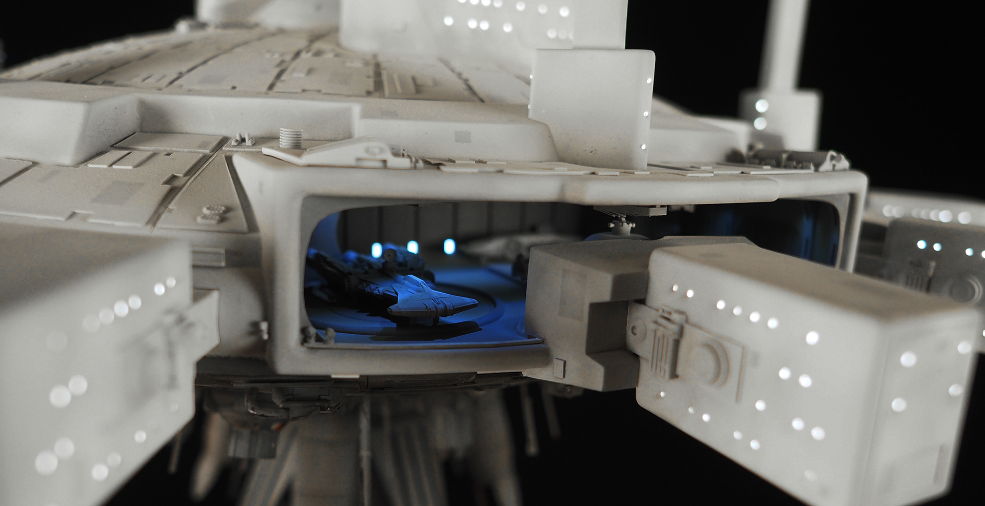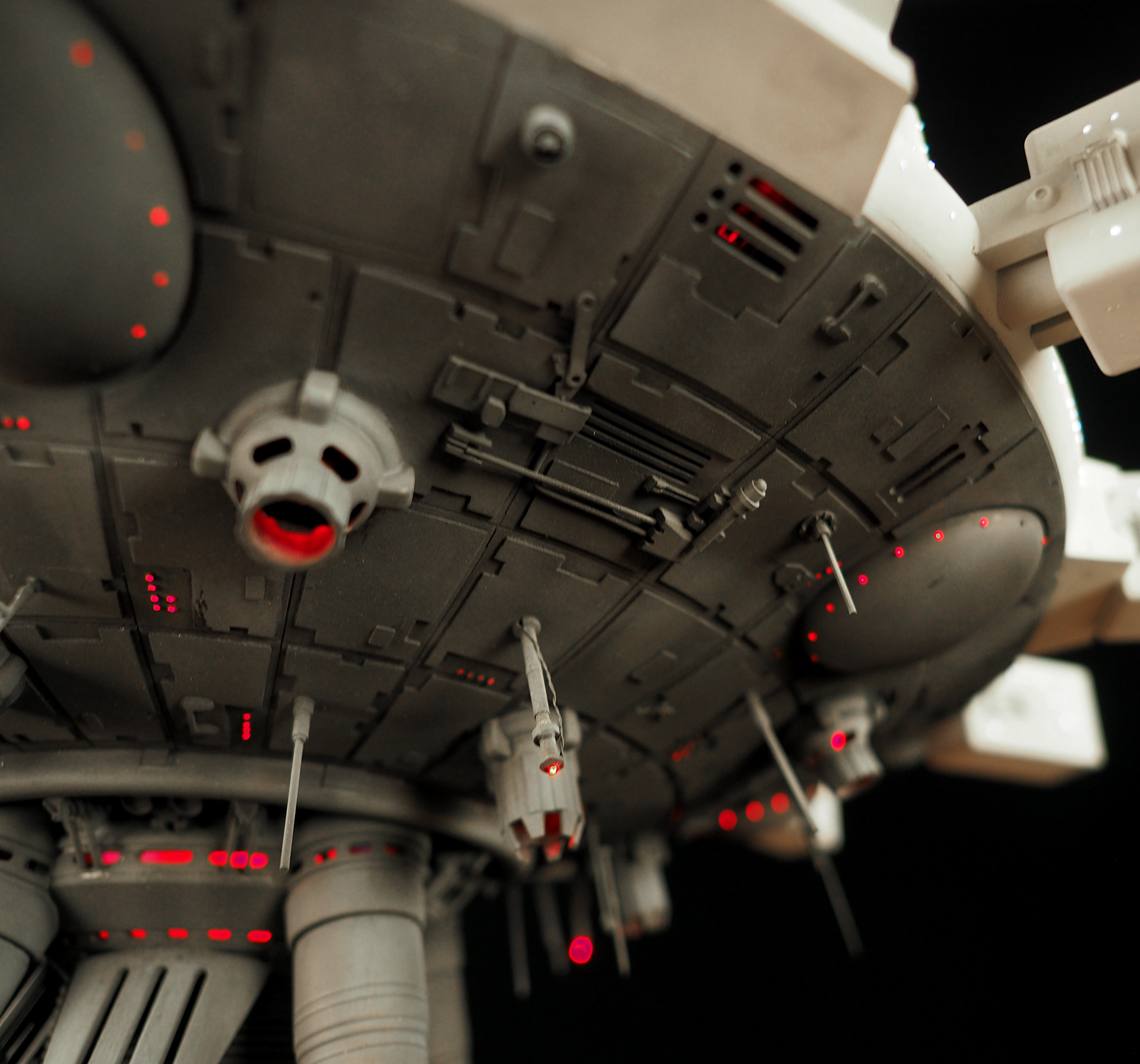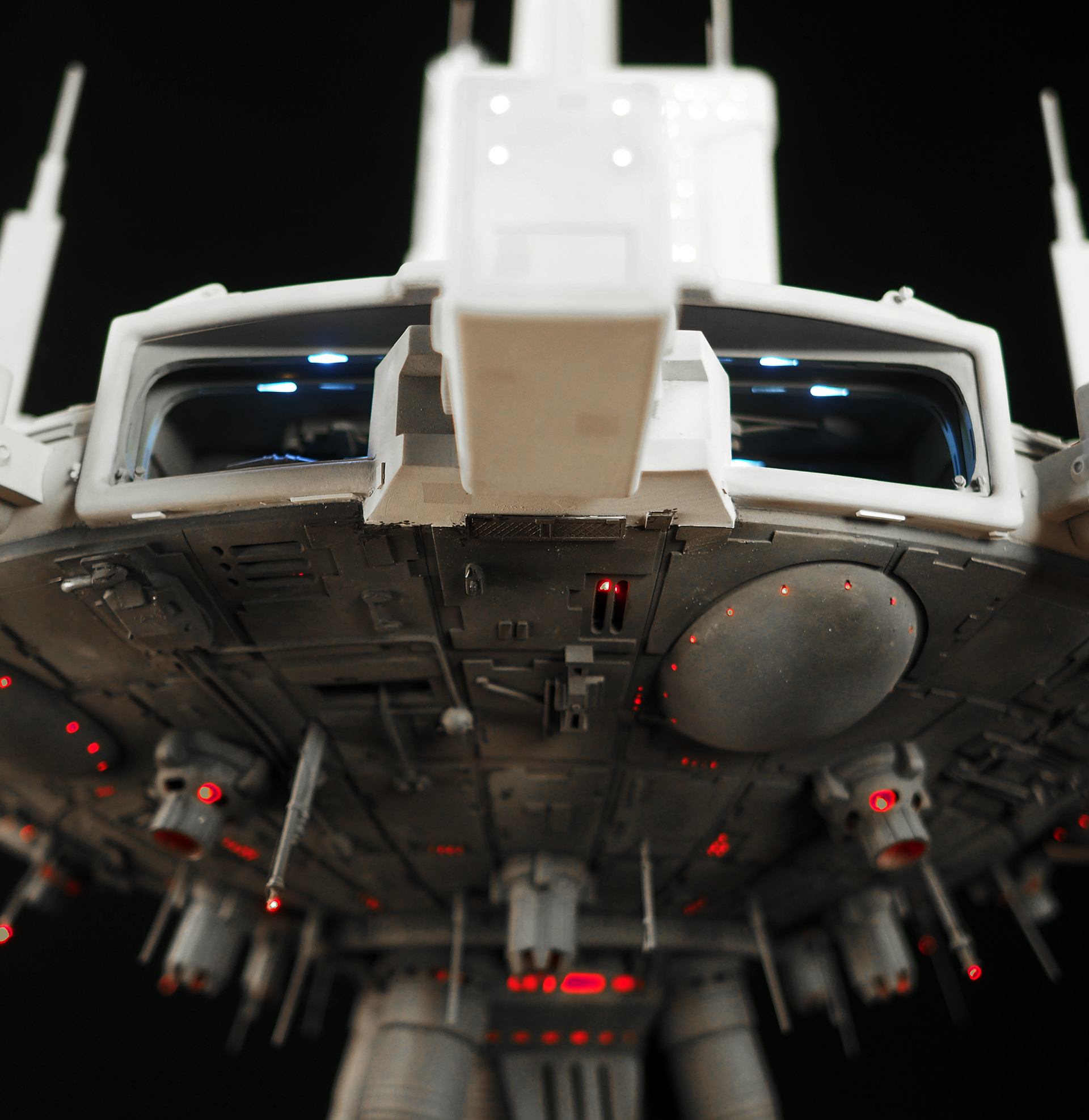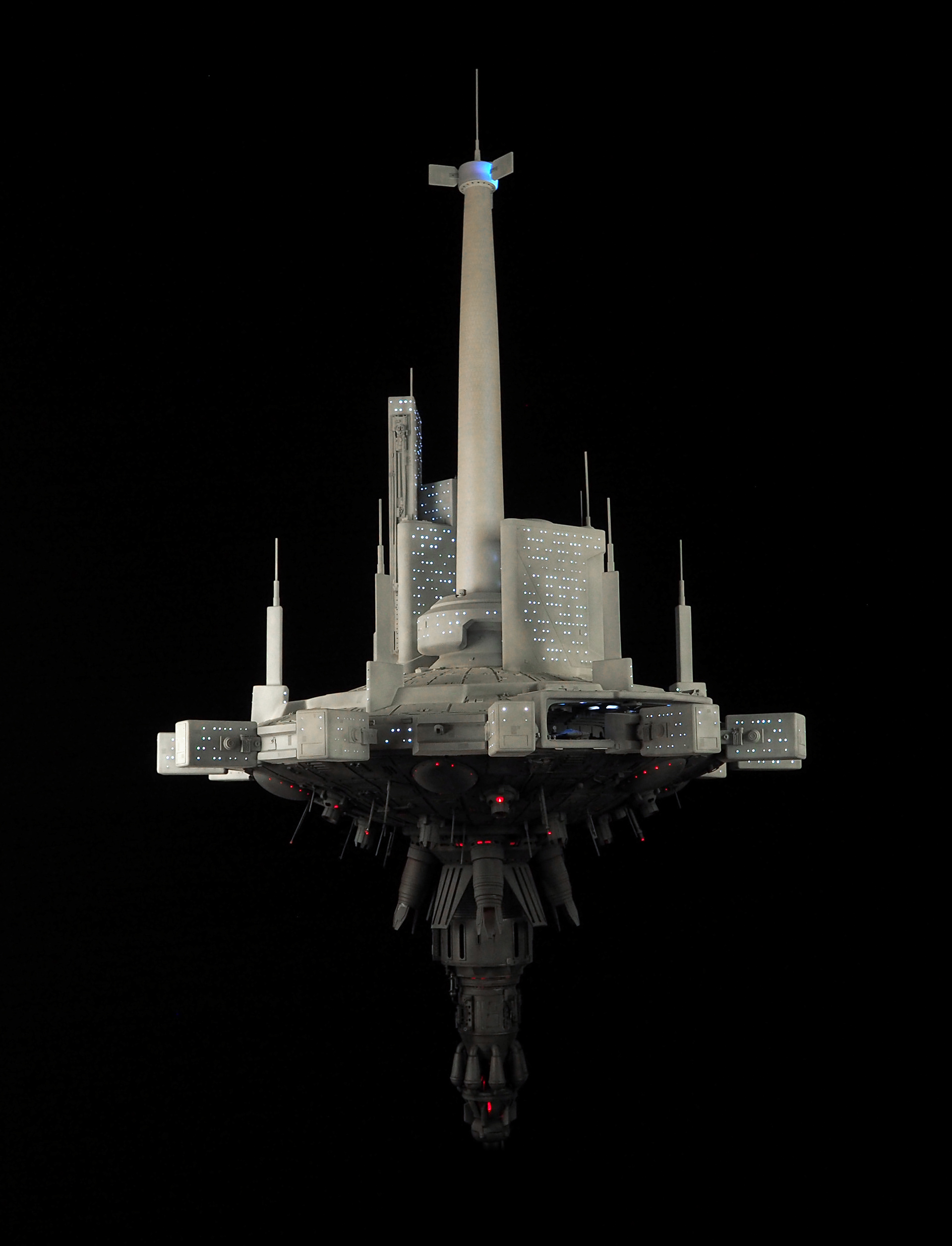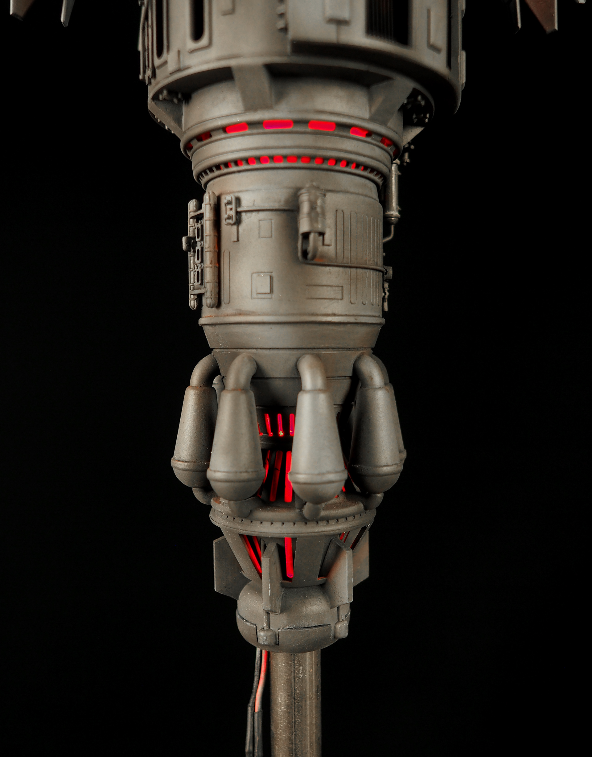 This is the Starlight Beacon, a three foot tall miniature made in the first half of 2021, under the direction of the Lucasfilm Story Group. Yes, ladies and germs, my personal fantasy of being hired by Lucasfilm to make a studio model is now reality! Designed using traditional model making skills as well as 3D design and part fabrication, my job was to translate three pieces of production art into a lit set piece for the High Republic Show, on starwars.com. Everything rides on an internal metal armature with side and bottom mount options, all lights run off of a 12 volt power supply, and there are so many exciting details both inside and out! Be sure to watch the episode of The High Republic where I talk about this model, and the article on starwars.com as well.Many thanks to Stinson Lenz for his loan of the Dowager Queen model file for the landing bay easter egg, and Josh Maruska for his ace Arduino skills which lit that beacon!