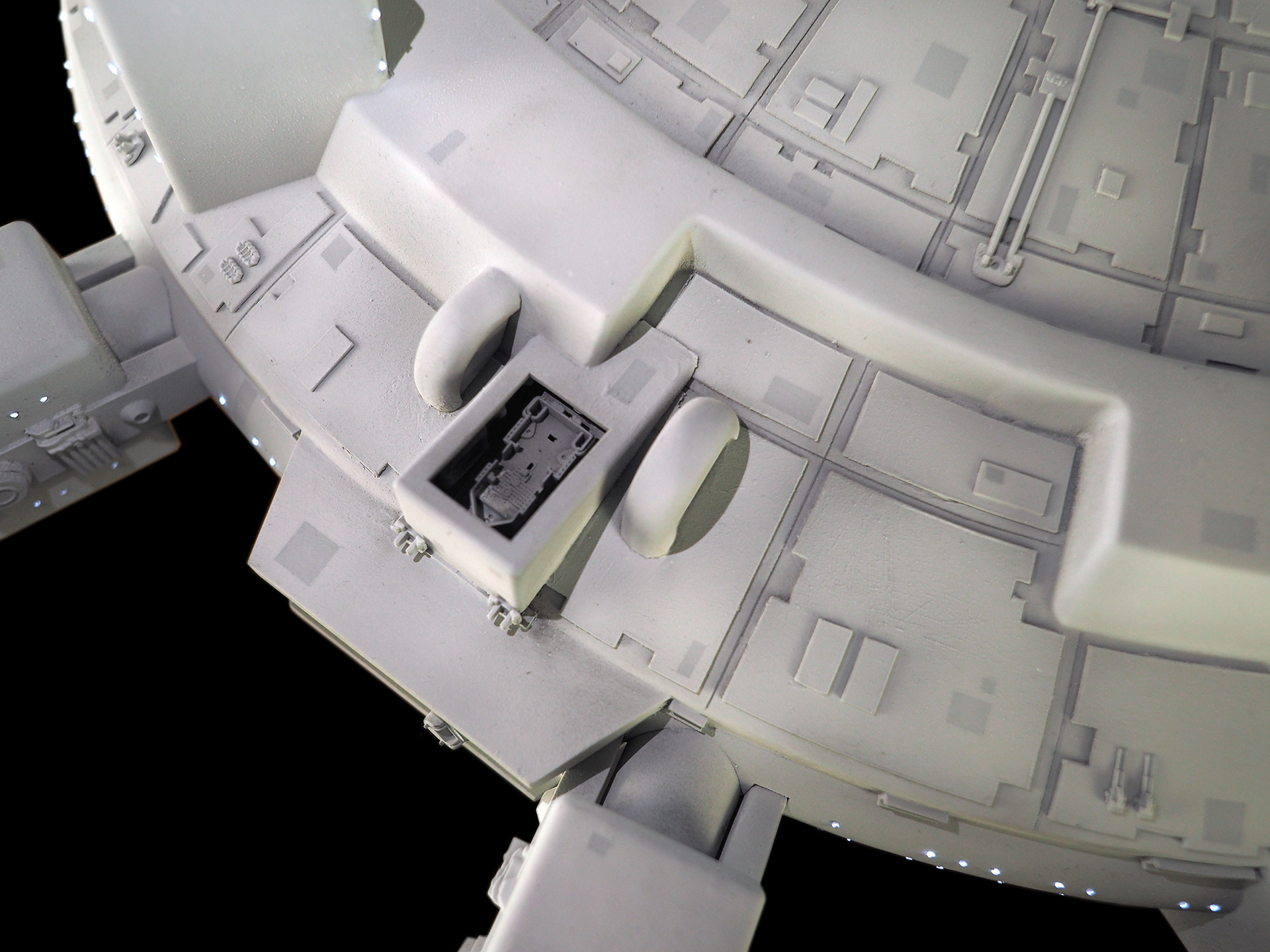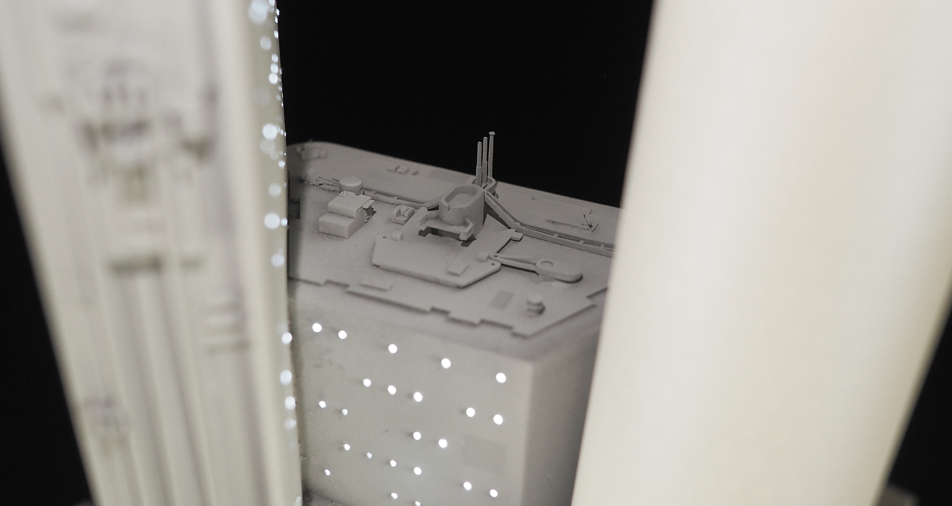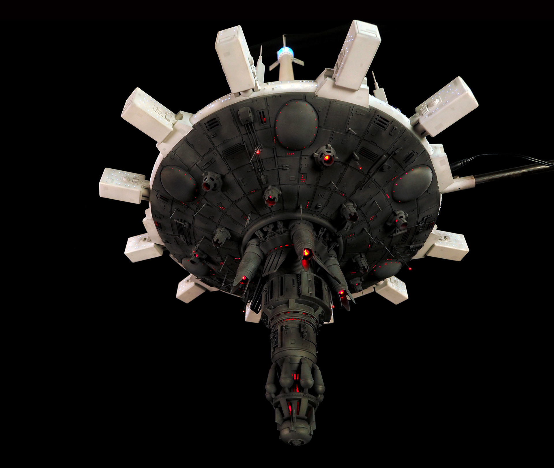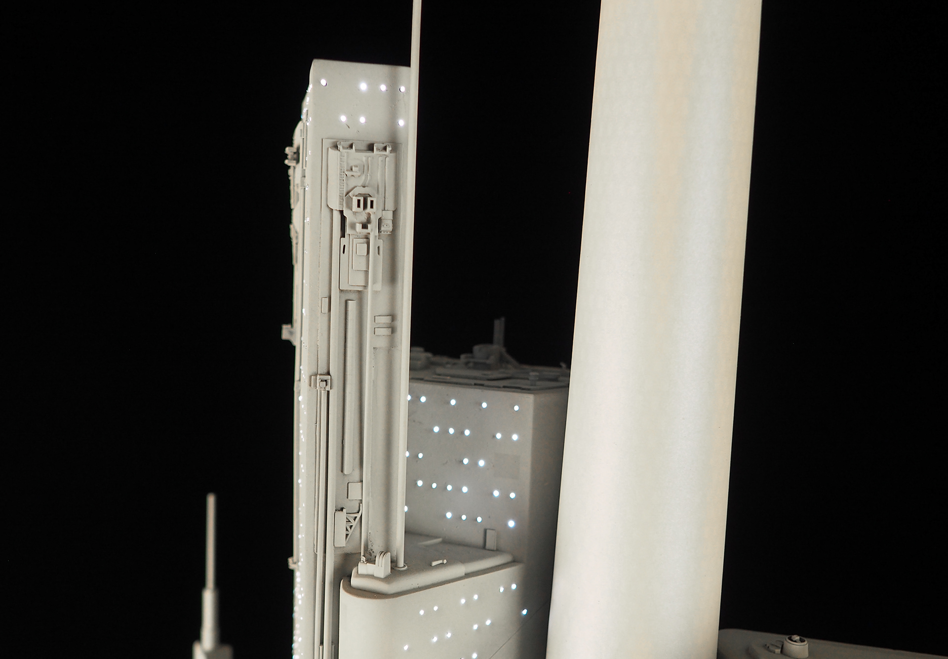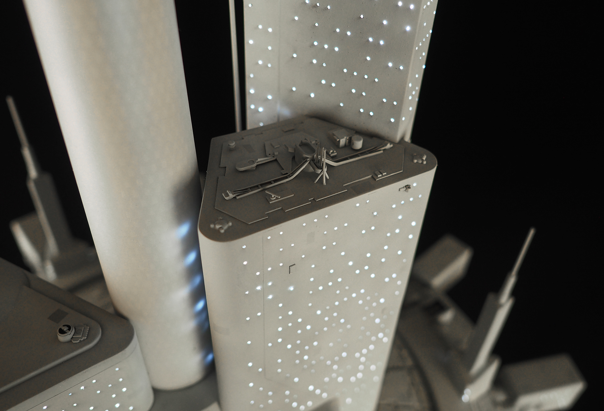 This is the Starlight Beacon, a three foot tall miniature made in the first half of 2021, under the direction of the Lucasfilm Story Group. Yes, ladies and germs, my personal fantasy of being hired by Lucasfilm to make a studio model is now reality! Designed using traditional model making skills as well as 3D design and part fabrication, my job was to translate three pieces of production art into a lit set piece for the High Republic Show, on starwars.com. Everything rides on an internal metal armature with side and bottom mount options, all lights run off of a 12 volt power supply, and there are so many exciting details both inside and out! Be sure to watch the episode of The High Republic where I talk about this model, and the article on starwars.com as well.Many thanks to Stinson Lenz for his loan of the Dowager Queen model file for the landing bay easter egg, and Josh Maruska for his ace Arduino skills which lit that beacon!