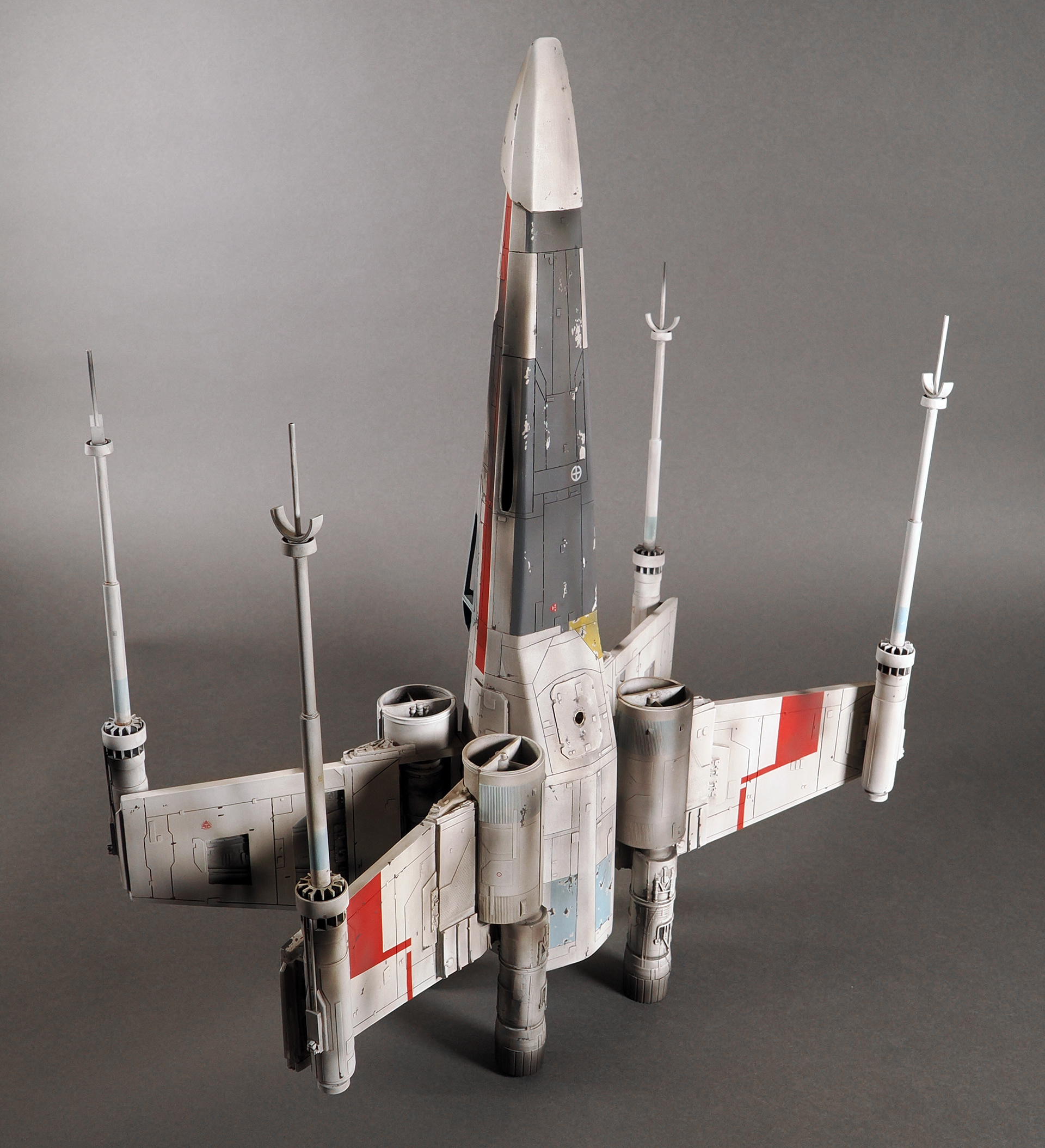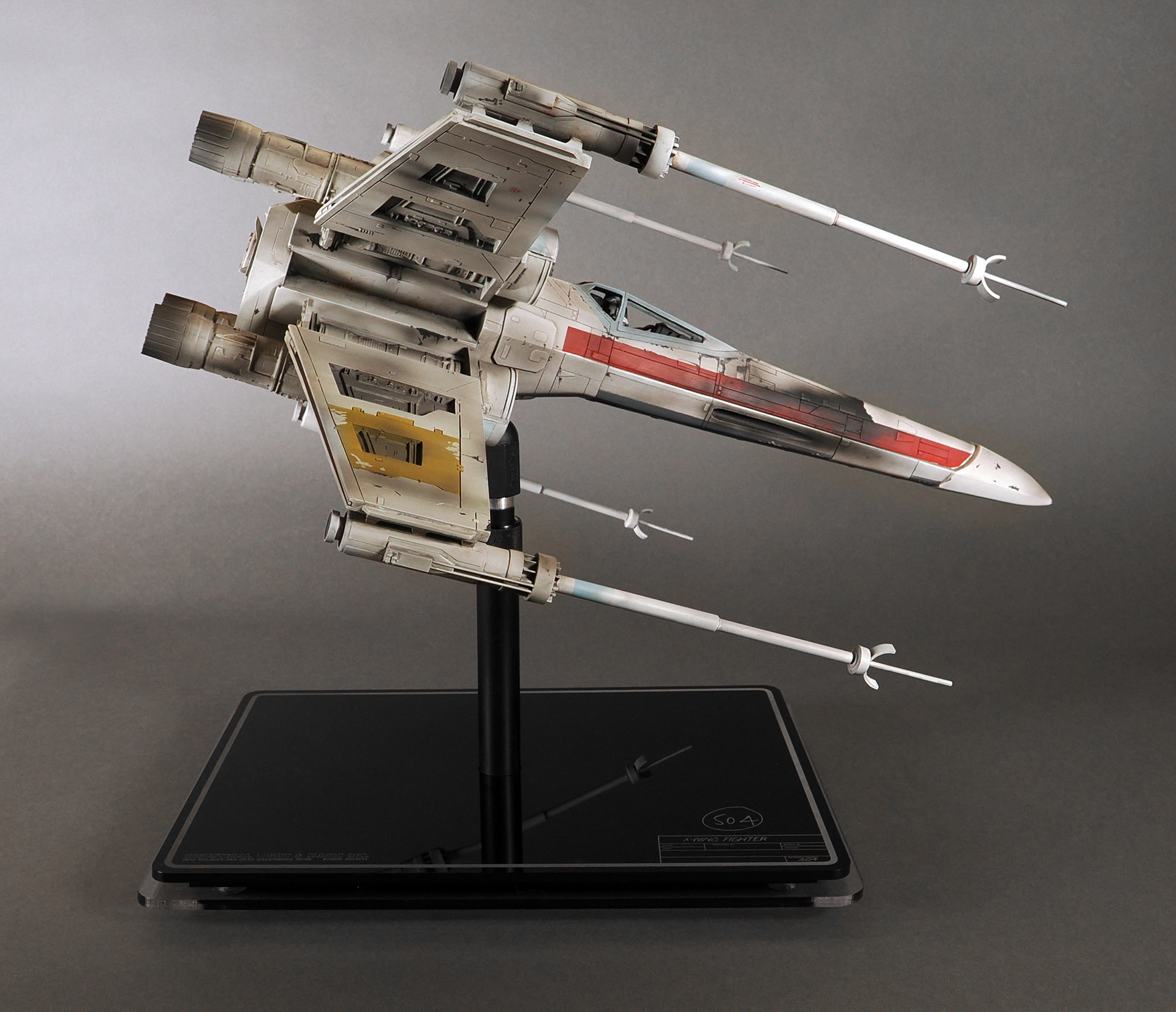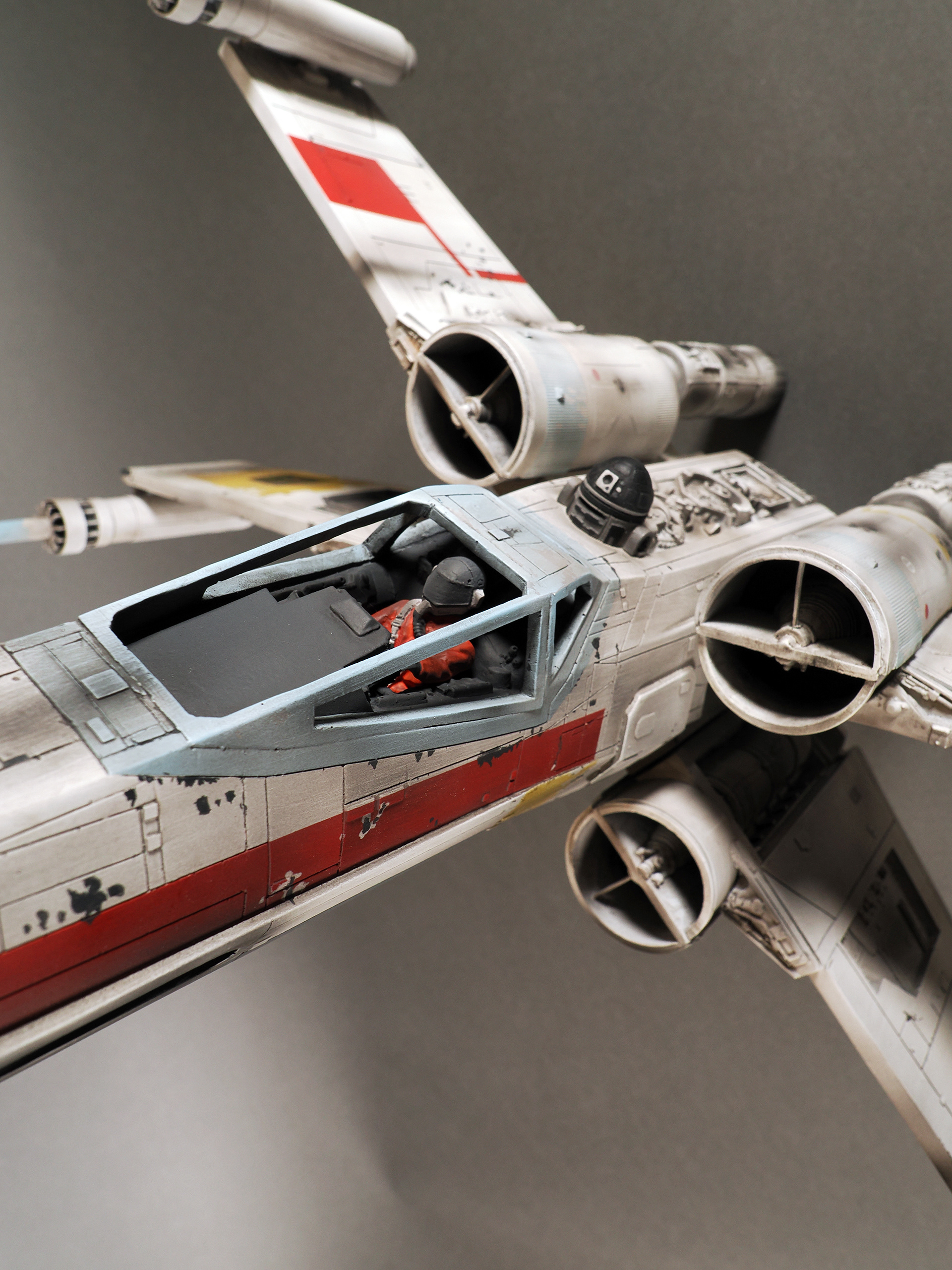 This is a representation of how the pyro Red 1 looked before it was partially detonated and then repaired and repainted as Red 3, which is how the model appears and survives today. No one remembers why it was changed, and presumed unused a second time, but it remains as the only existing intact example of a pyro X-Wing from the first film.