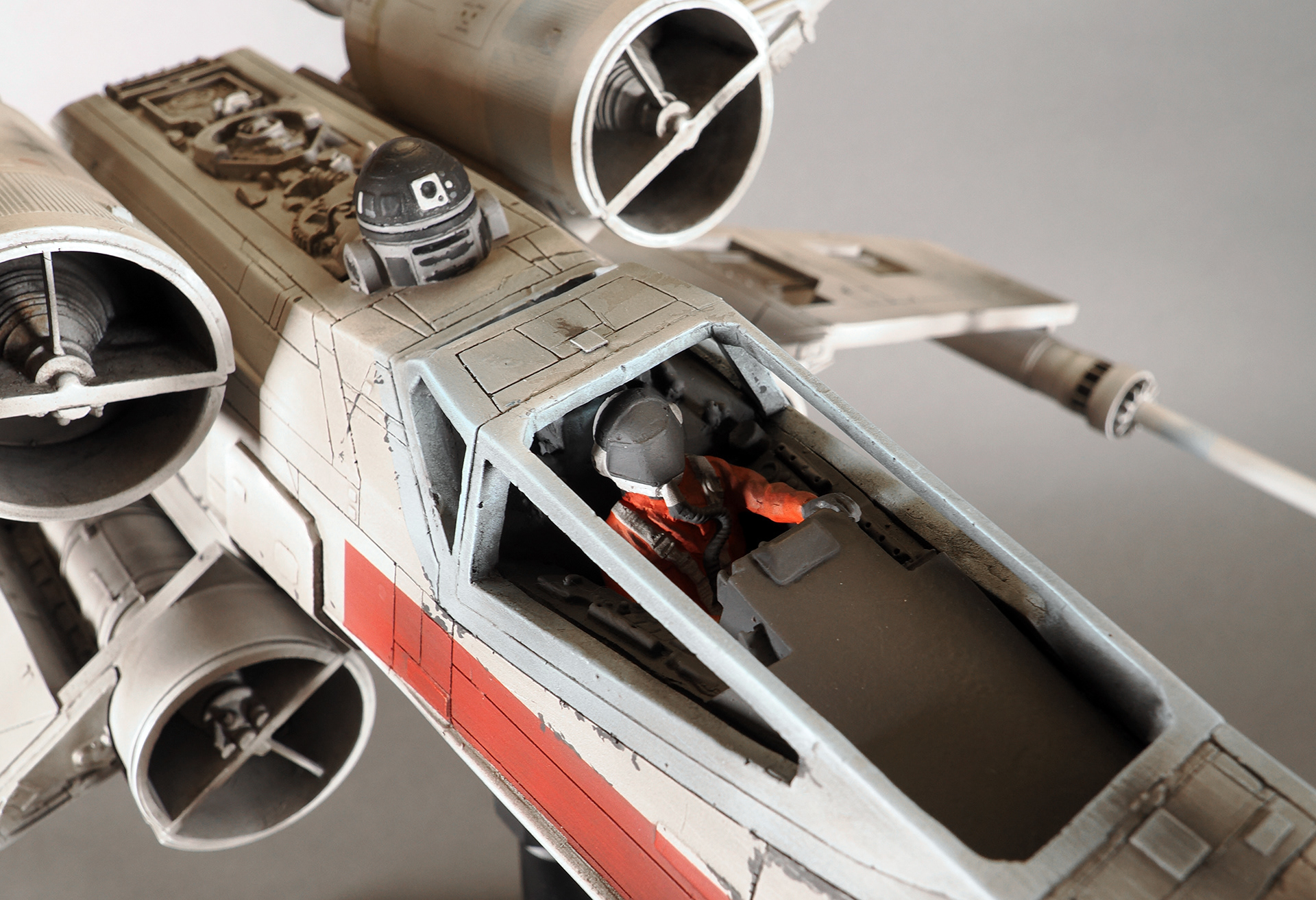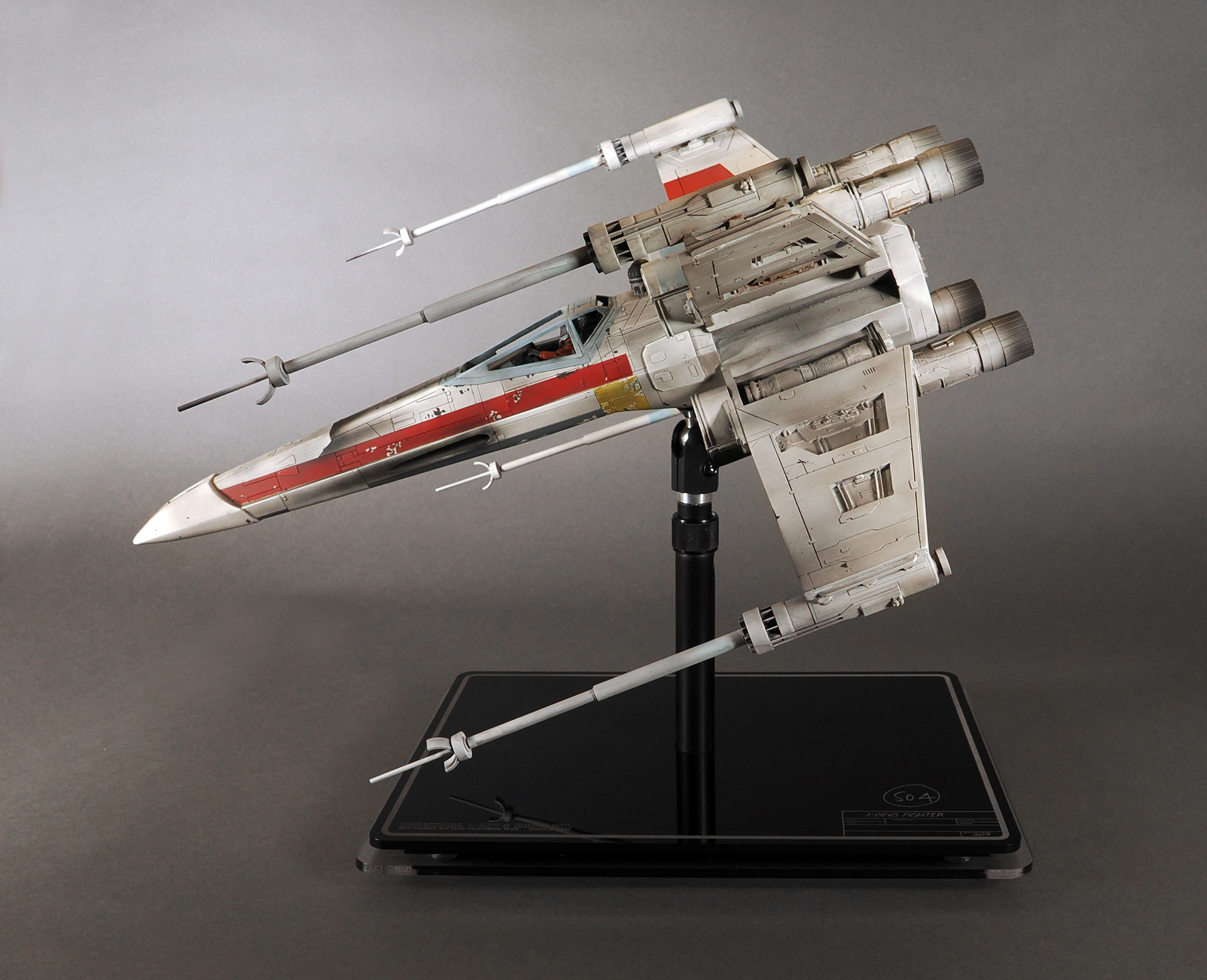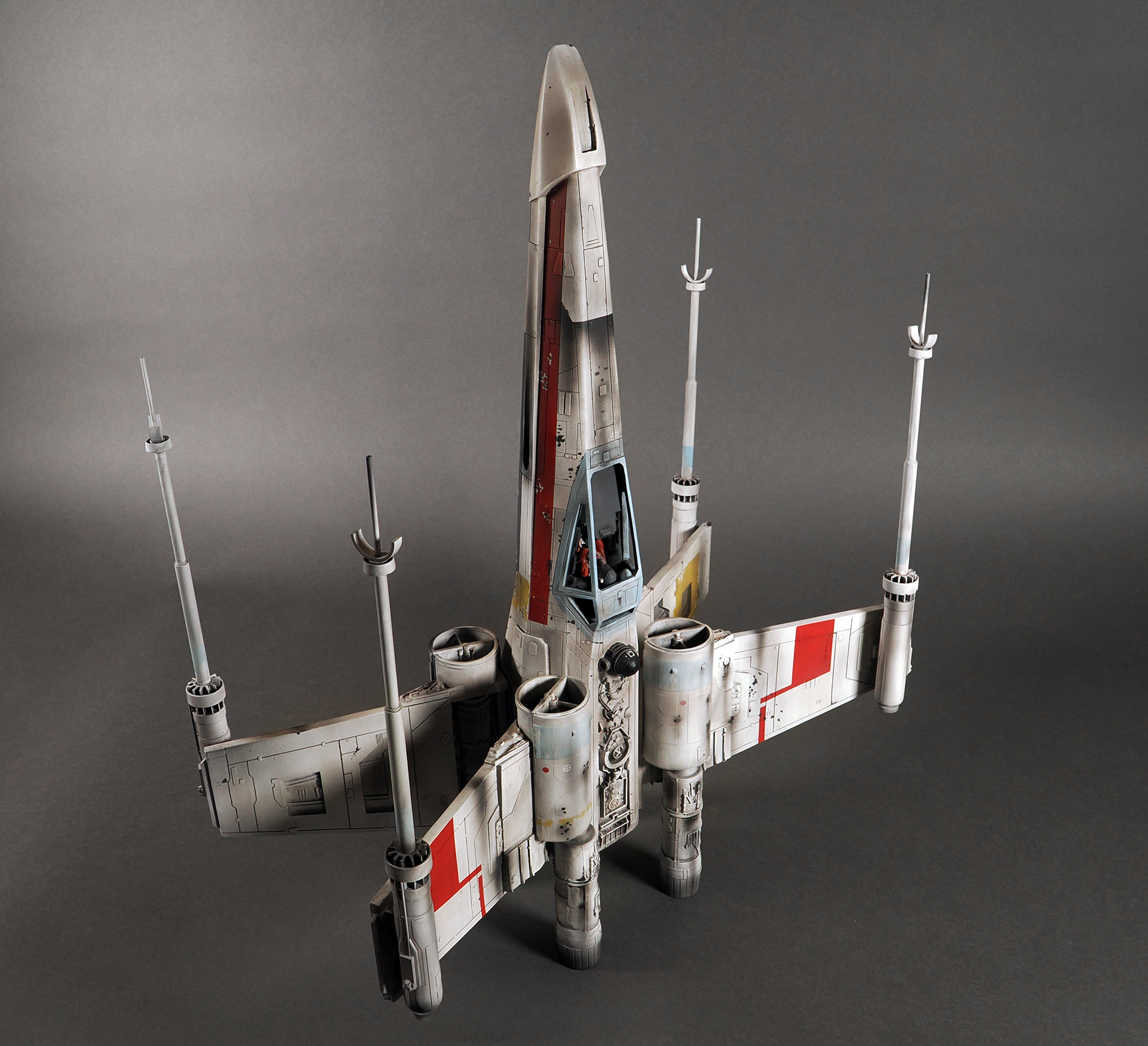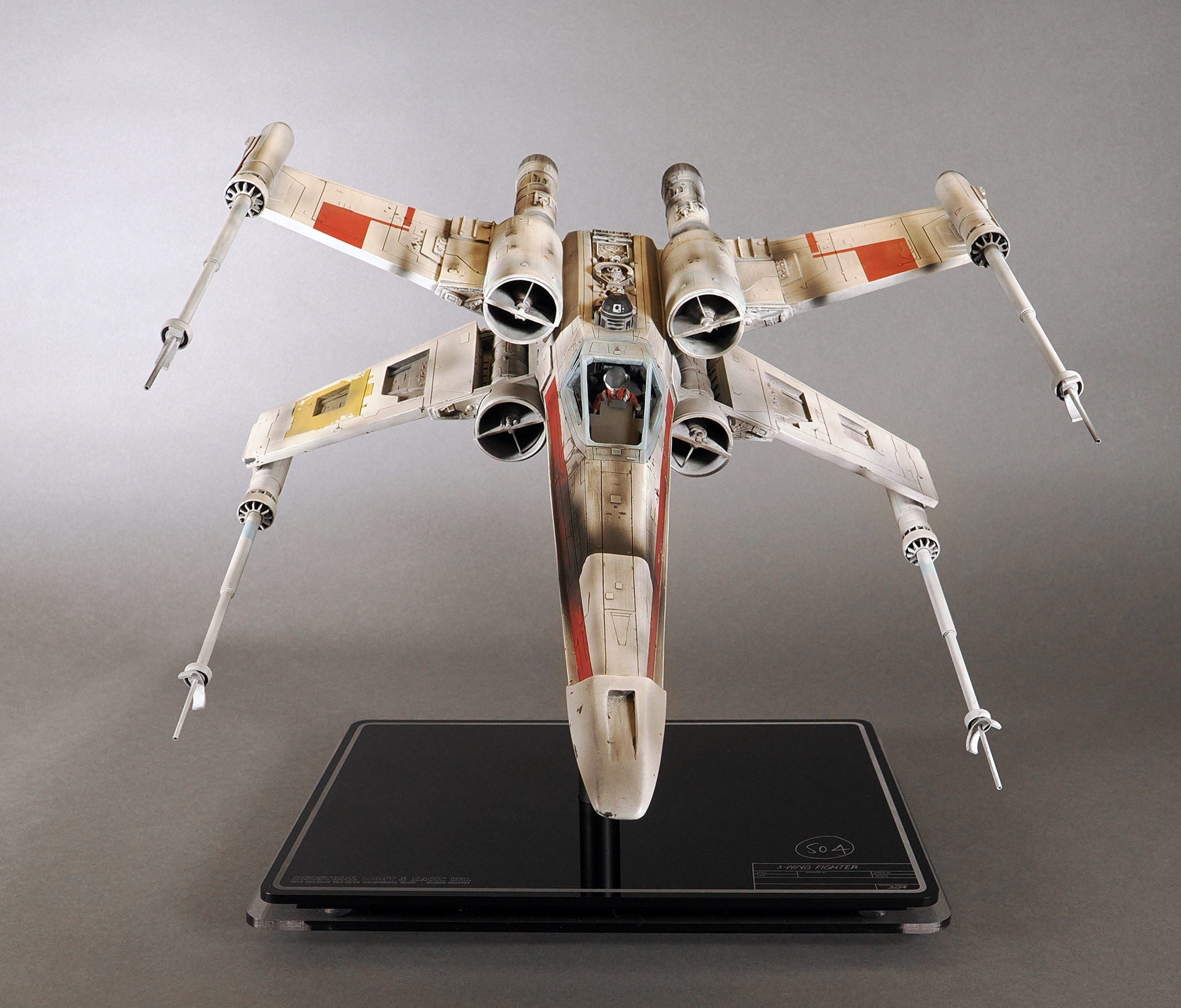 This is a representation of how the pyro Red 1 looked before it was partially detonated and then repaired and repainted as Red 3, which is how the model appears and survives today. No one remembers why it was changed, and presumed unused a second time, but it remains as the only existing intact example of a pyro X-Wing from the first film.